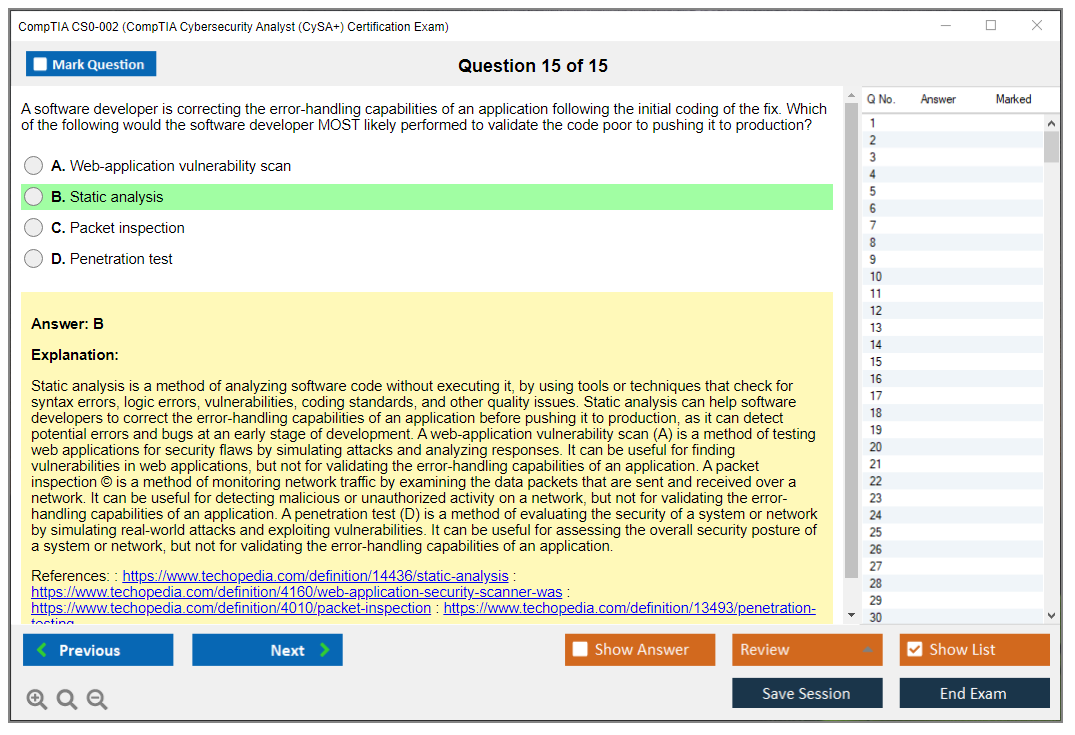 The CompTIA CS0-002 (CompTIA CySA+ Certification Exam) is an intermediate-level cybersecurity certification exam designed to validate the skills and knowledge required to perform key cybersecurity analyst tasks, including threat detection, analysis, and response. It focuses on a hands-on approach to cybersecurity, emphasizing practical skills and real-world scenarios.