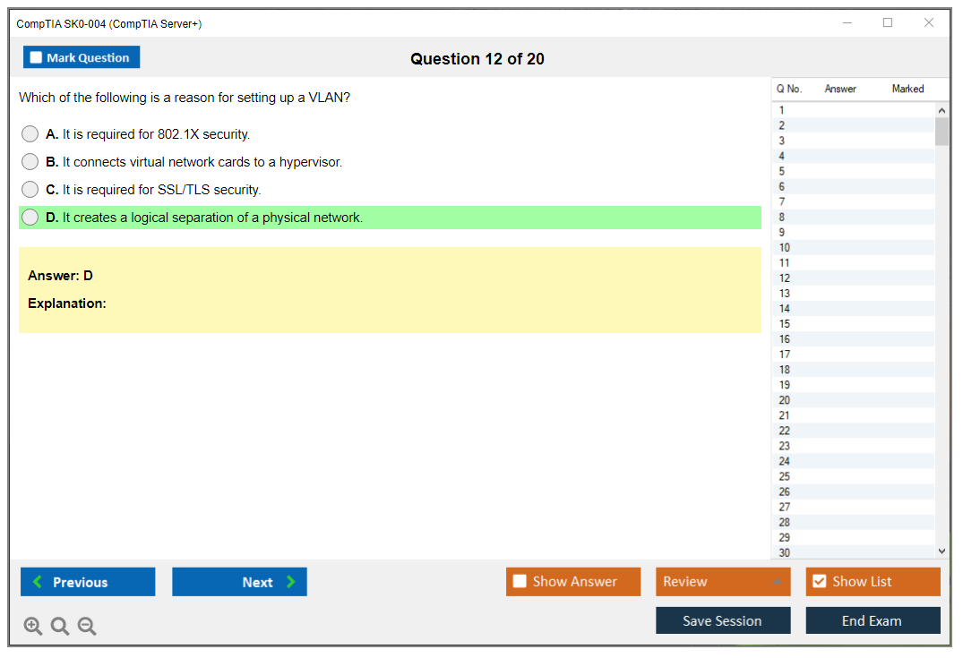 The CompTIA SK0-004 (CompTIA Server+) exam is designed to validate the skills and knowledge of IT professionals in server support and administration. It covers areas such as server architecture, administration, storage, security, networking, troubleshooting, and disaster recovery.