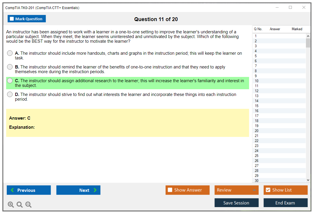 The CompTIA TK0-201 Exam is part of the CompTIA CTT+ certification, which is aimed at validating the teaching skills of instructors. The exam assesses the ability to effectively teach and manage a classroom or virtual environment.
