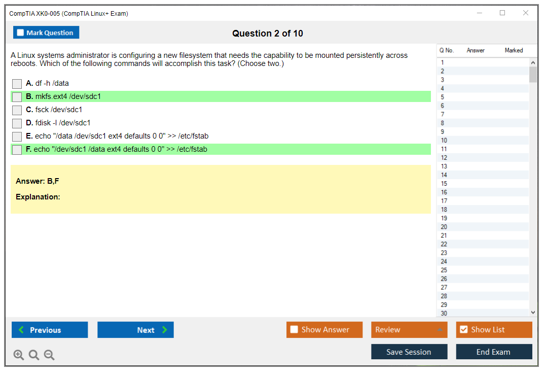 The question format of the CompTIA XK0-005 Exam includes multiple-choice questions (single and multiple response), drag and drops, and performance-based questions.