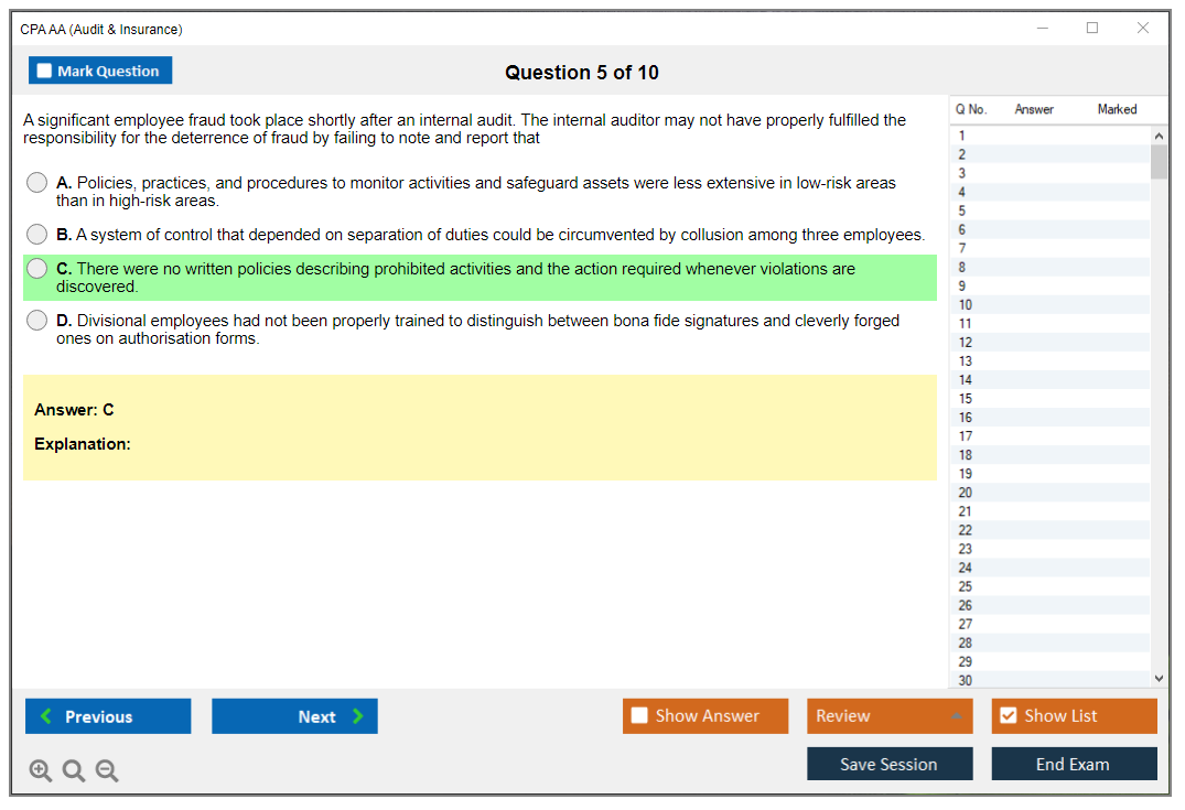 The CPA AA (Audit & Insurance) Exam is a professional examination designed for individuals in the auditing and insurance fields. It assesses the knowledge, skills, and competencies required to perform effectively as a Certified Public Accountant specializing in audit and insurance.