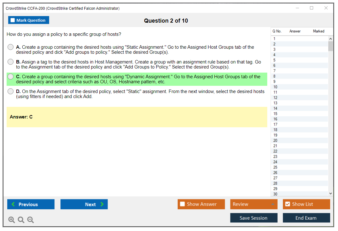 The CrowdStrike CCFA-200 (CrowdStrike Certified Falcon Administrator) Exam is designed to validate the skills and knowledge required to manage and configure the CrowdStrike Falcon platform effectively. It is intended for IT professionals who are responsible for the deployment, management, and troubleshooting of the Falcon platform.