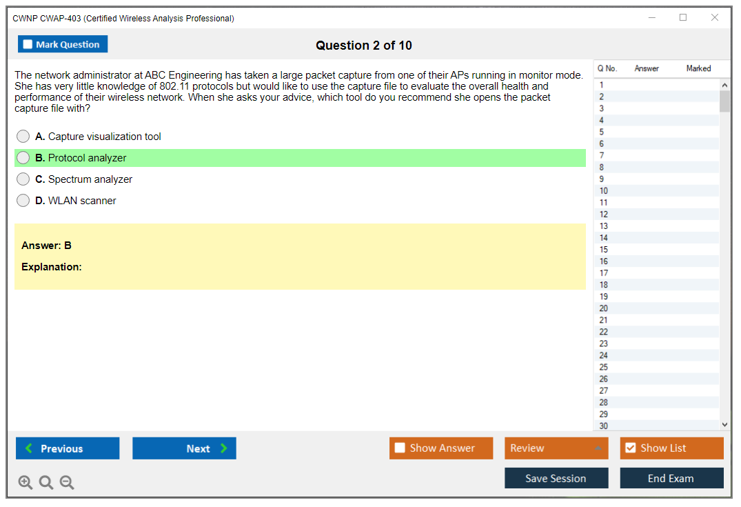 The CWNP CWAP-403 (Certified Wireless Analysis Professional) exam is a certification test designed to validate the skills and knowledge of professionals in analyzing and troubleshooting wireless networks.