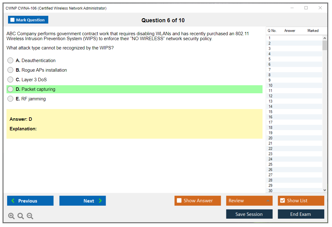 The CWNP CWNA-106 exam is part of the CWNP certification track, which includes various levels such as CWNA (Certified Wireless Network Administrator), CWSP (Certified Wireless Security Professional), CWDP (Certified Wireless Design Professional), and CWAP (Certified Wireless Analysis Professional).