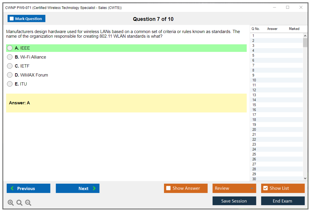 The CWNP PW0-071 (Certified Wireless Technology Specialist - Sales) exam is designed for sales professionals who need to understand the basics of wireless LANs (WLANs) to effectively sell wireless networking solutions. It covers fundamental concepts of wireless technologies, standards, and security.