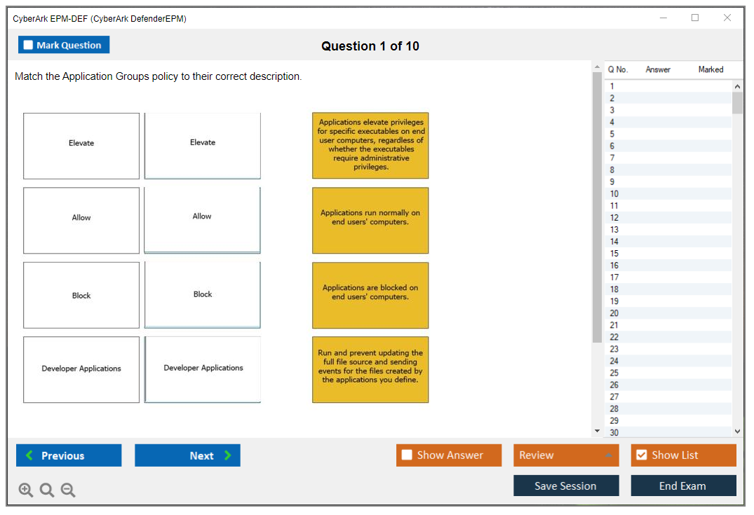 The CyberArk EPM-DEF (CyberArk Defender - EPM) exam is designed to validate the knowledge and skills required to effectively deploy and manage CyberArk Endpoint Privilege Manager (EPM) solutions. This certification is aimed at professionals who are responsible for securing endpoints by enforcing least privilege policies and managing application control.