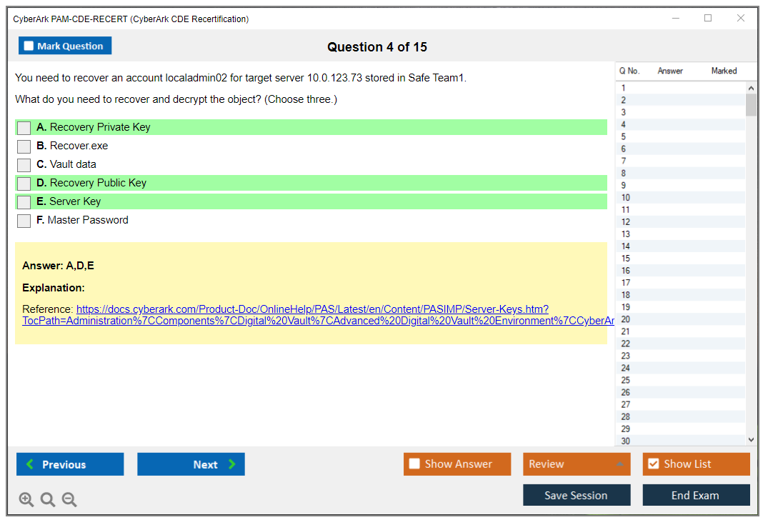 Sample questions for the CyberArk PAM-CDE-RECERT Exam can be found on the CyberArk official website or through CyberArk training partners.