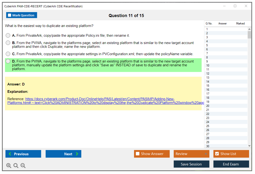 The CyberArk PAM-CDE-RECERT (CyberArk CDE Recertification) Exam is designed for professionals who need to recertify their expertise in CyberArk's Privileged Access Management (PAM) solutions. It ensures that certified individuals maintain a current and comprehensive understanding of CyberArk's technologies and best practices.