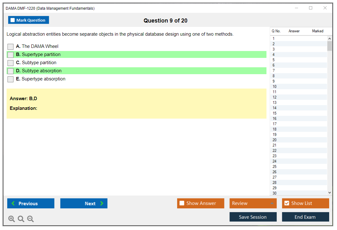 The question format of the DAMA DMF-1220 Exam is multiple-choice.