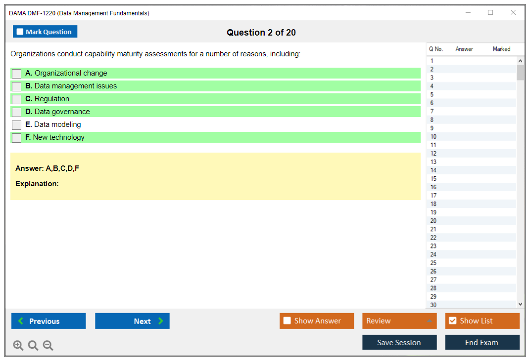 The DAMA DMF-1220 (Data Management Fundamentals) Exam is a certification test provided by the Data Management Association (DAMA) International. It assesses an individual's knowledge and understanding of data management principles, practices, and frameworks as outlined in the DAMA Body of Knowledge (DAMA-DMBOK).