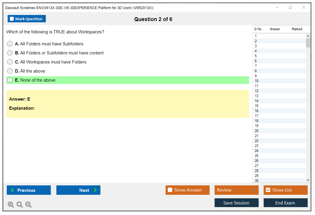 What is the Question Format of Dassault Systemes ENOV613X-3DE Exam?