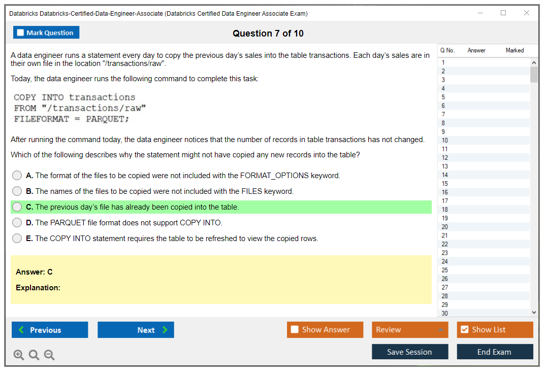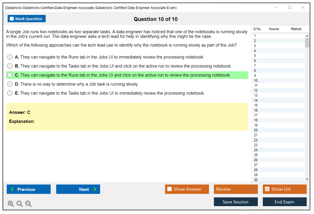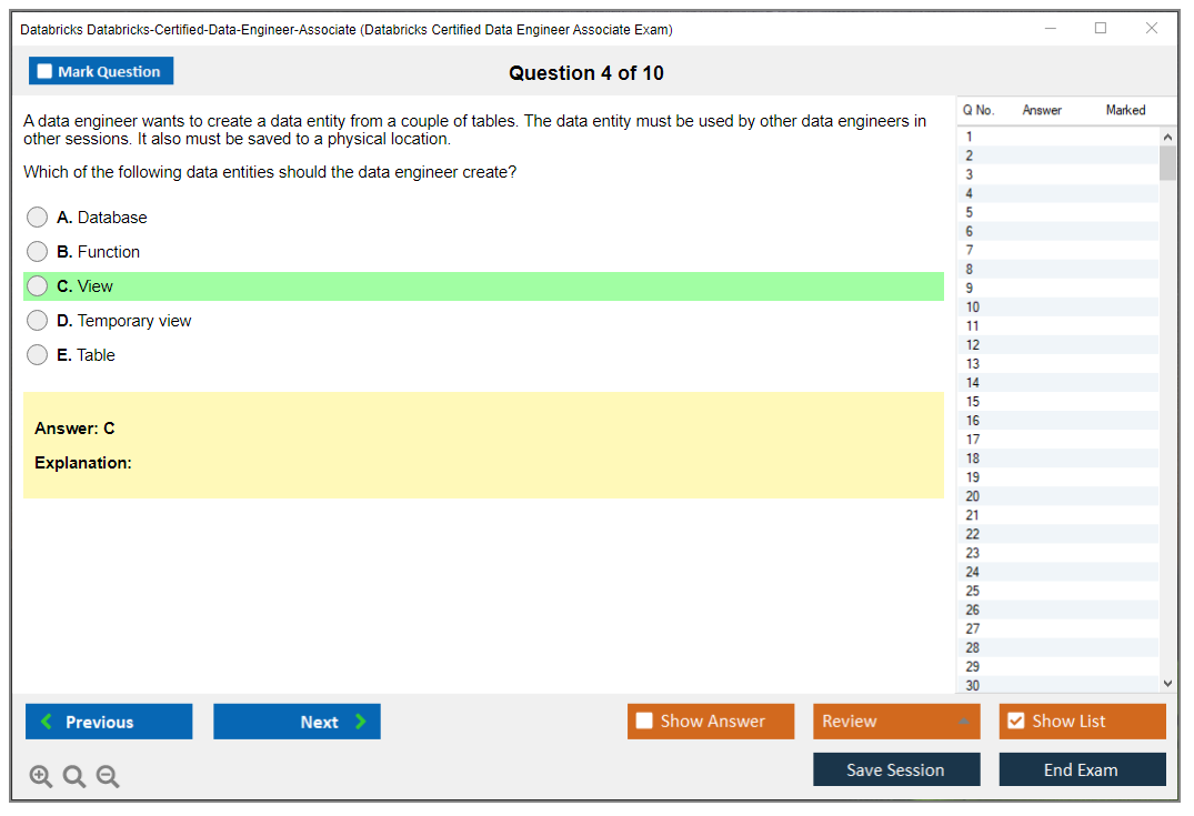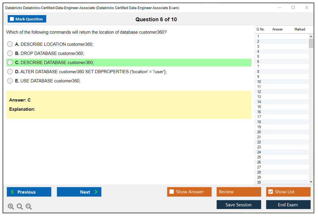 The Databricks Certified Data Engineer Associate Exam is an industry-recognized certification that evaluates a candidate's proficiency in data engineering using the Databricks platform. It covers topics such as data ingestion, transformation, and processing, as well as working with Databricks tools and services.