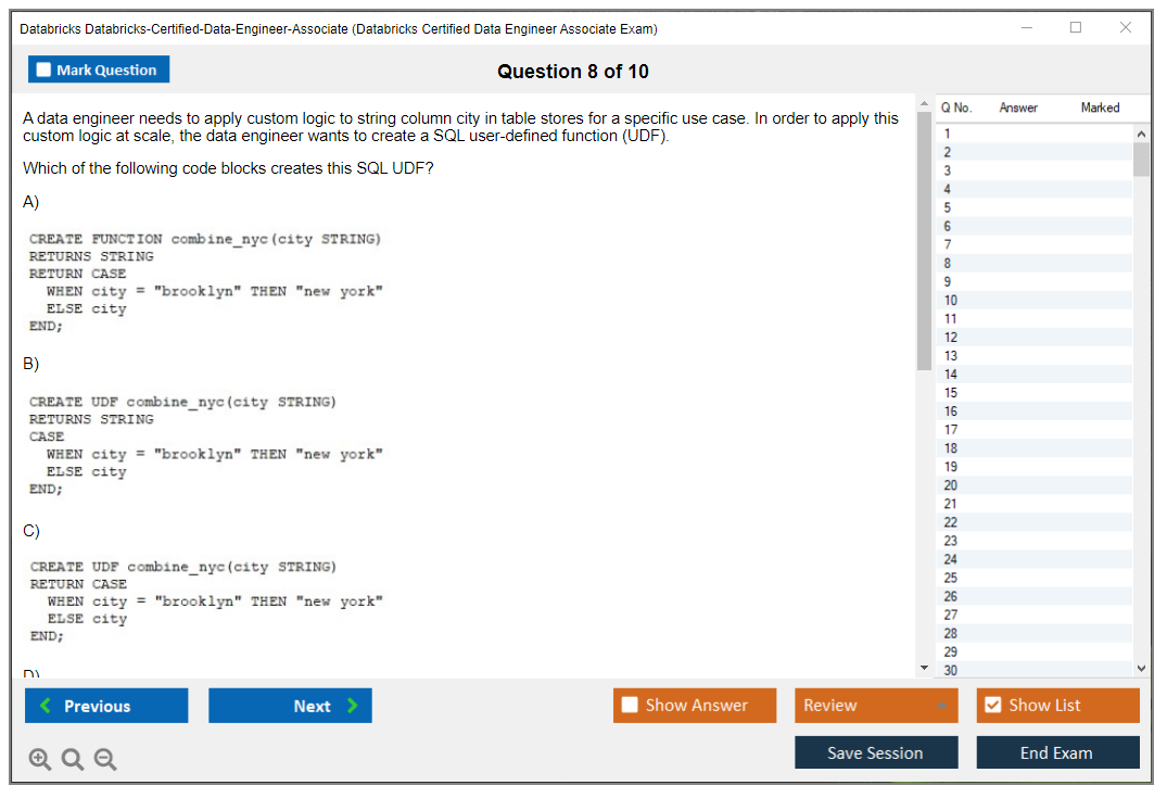 What is the Question Format of Databricks Databricks-Certified-Data-Engineer-Associate Exam?