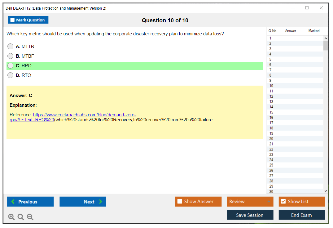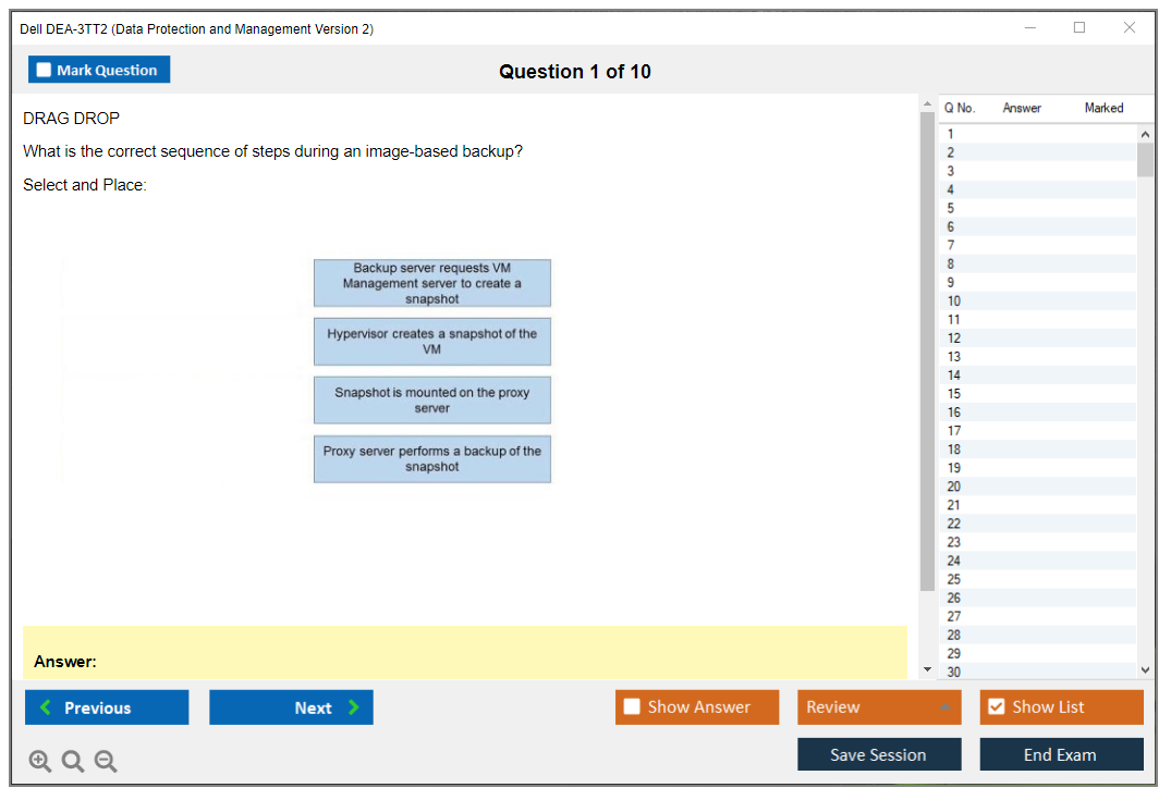 The Dell DEA-3TT2 (Associate - Data Protection and Management Version 2) Exam is designed to assess the knowledge and skills of individuals in data protection and management. It focuses on various aspects such as data protection concepts, technologies, and methods used to safeguard data.
