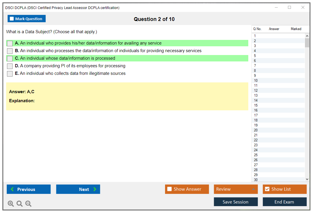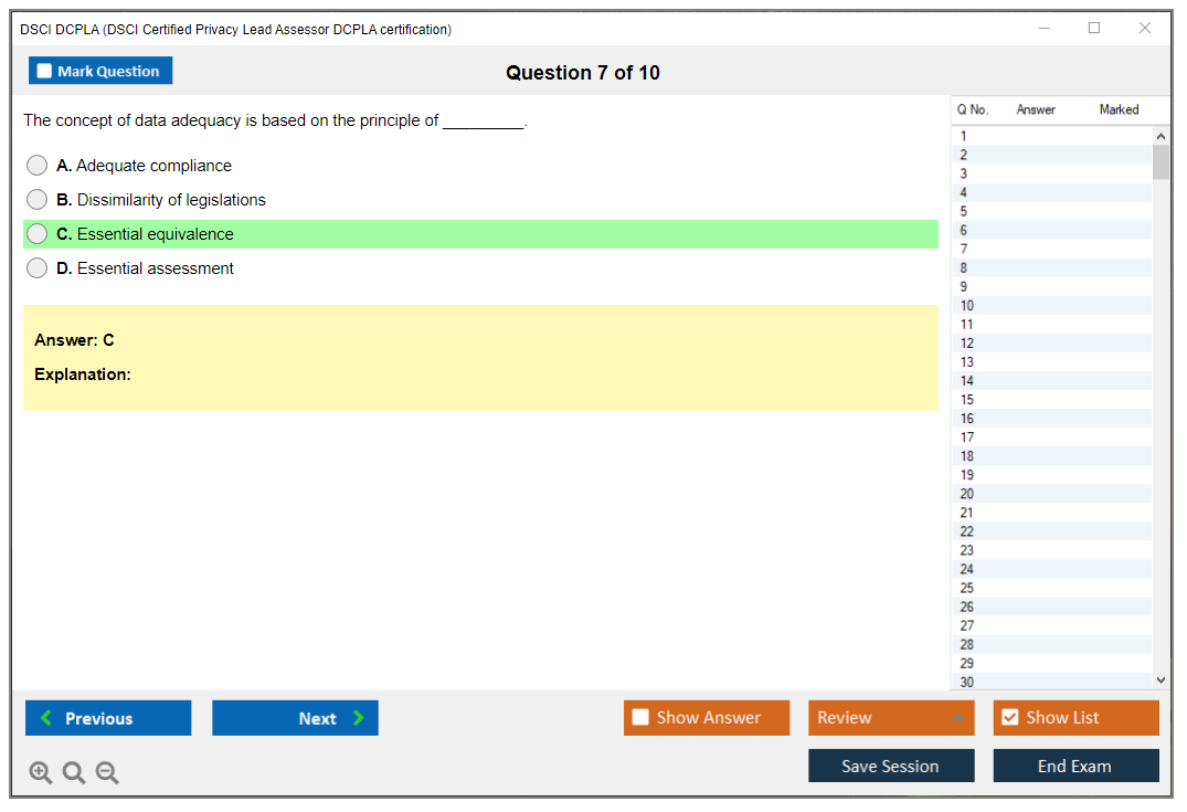 The DSCI Certified Privacy Lead Assessor (DCPLA) Exam is a certification offered by the Data Security Council of India (DSCI) aimed at validating the knowledge and skills of professionals in the field of privacy and data protection.