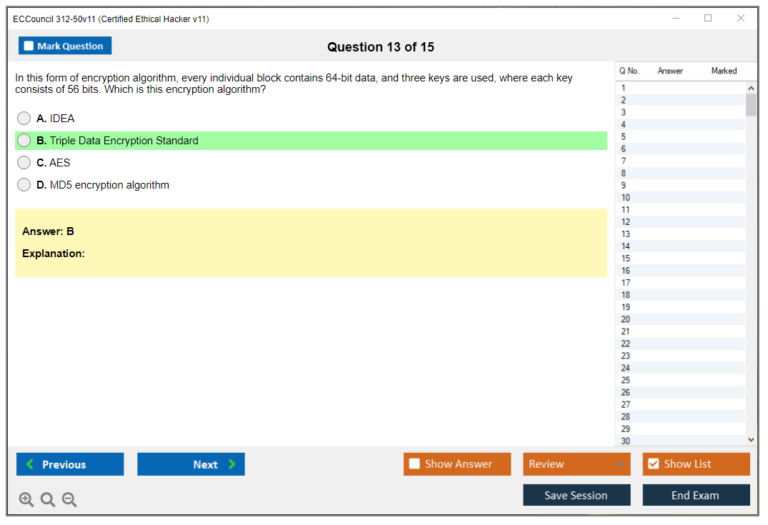 The ECCouncil 312-50v11 (Certified Ethical Hacker Exam (CEH v11)) is a certification exam designed to test the knowledge and skills of individuals in the field of ethical hacking and information security. The exam covers various topics related to identifying vulnerabilities, penetration testing, and securing systems against cyber threats.