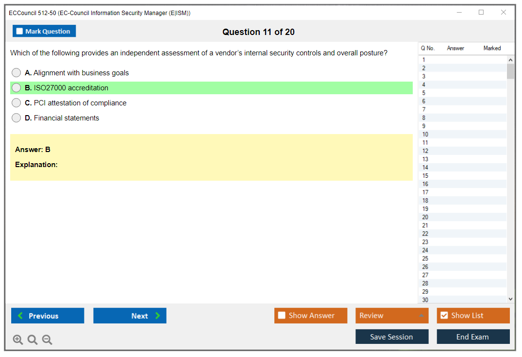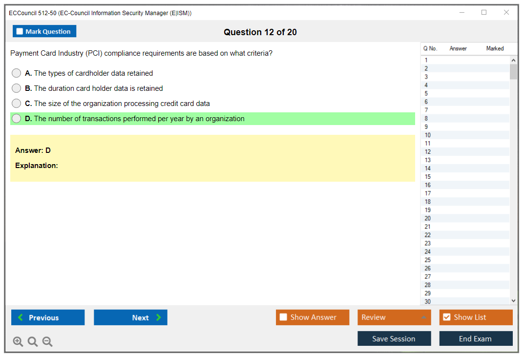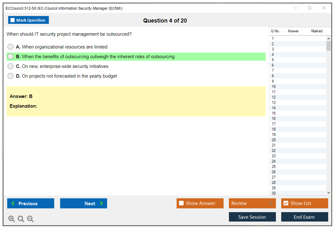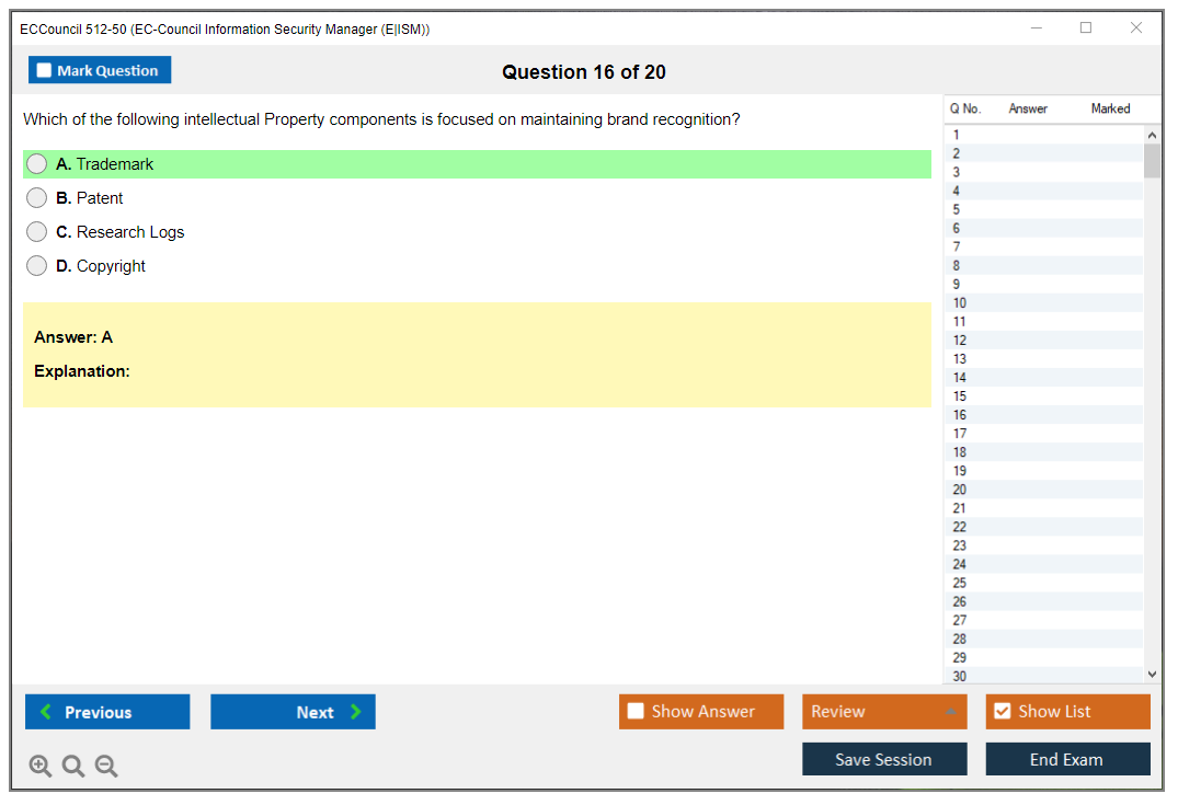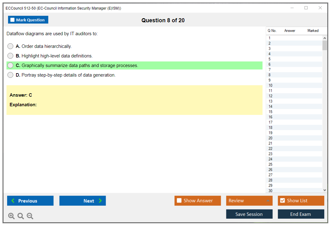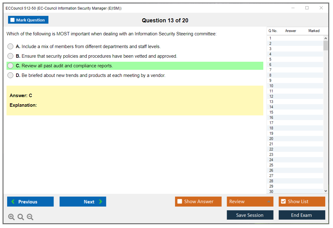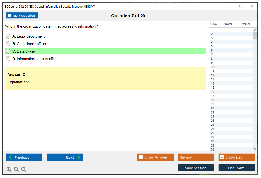 The ECCouncil 512-50, also known as the EC-Council Information Security Manager (E|ISM) exam, is designed to validate the skills and knowledge of professionals in the field of information security management. This certification focuses on the strategic aspects of information security, including governance, risk management, and compliance.