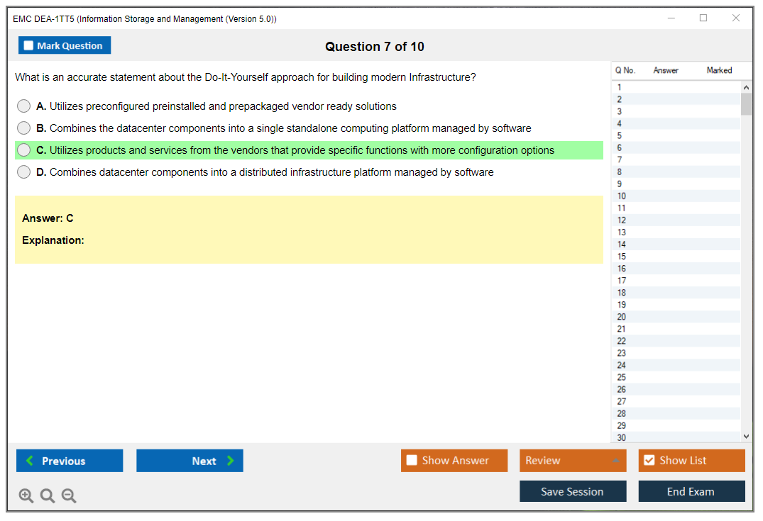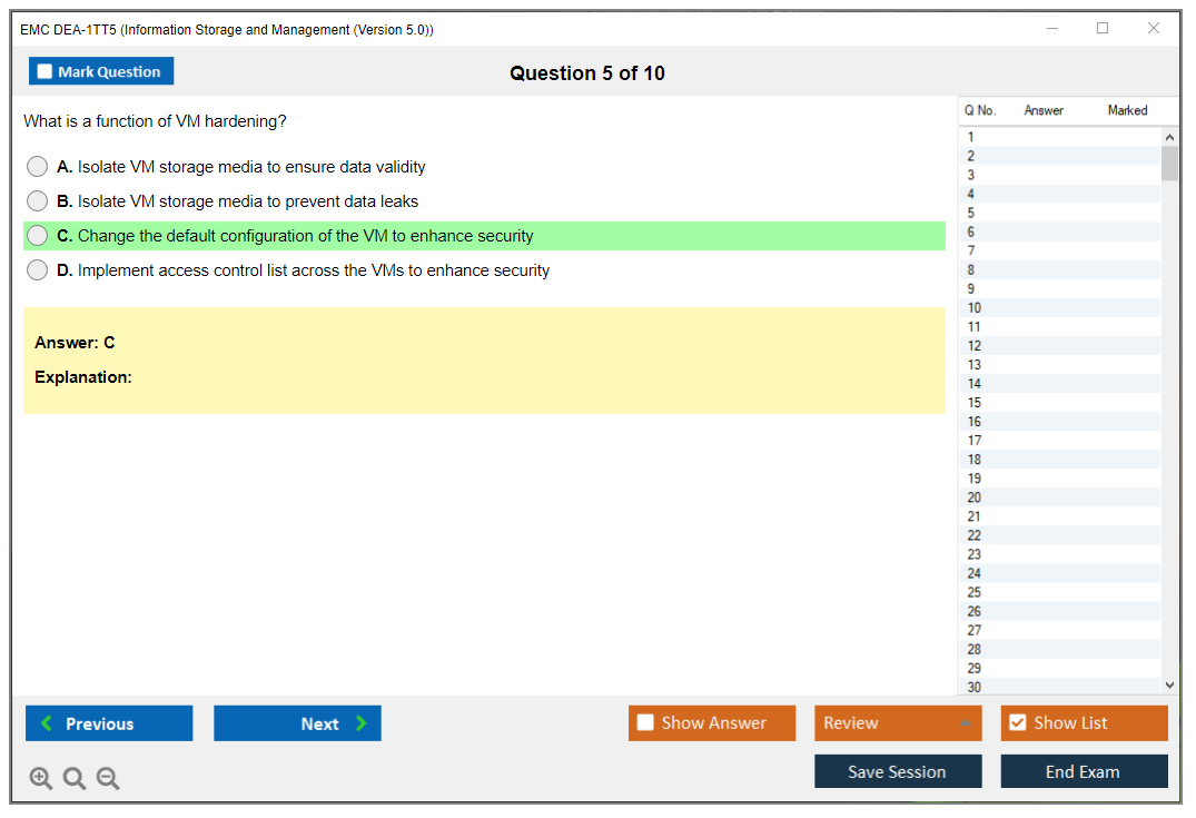 The EMC DEA-1TT5 (Associate - Information Storage and Management Version 5.0) exam is designed to validate the knowledge and skills required for managing and handling information storage in modern IT environments. It covers a broad range of topics including storage systems, storage networking technologies, backup, recovery, and data management.