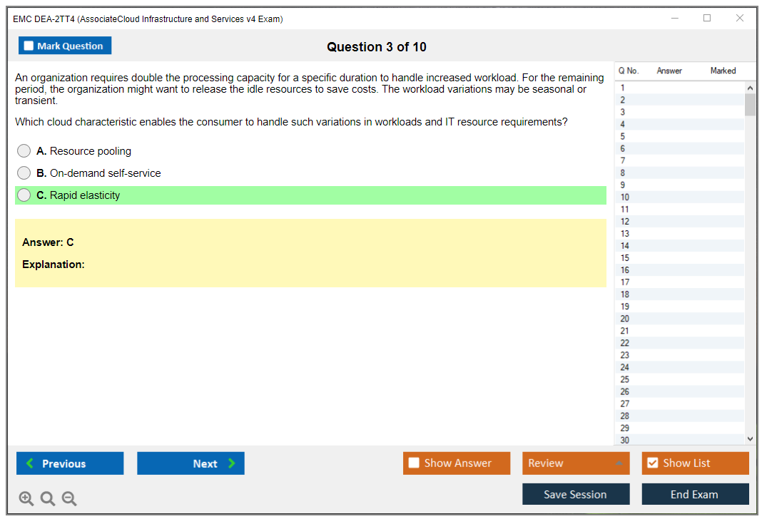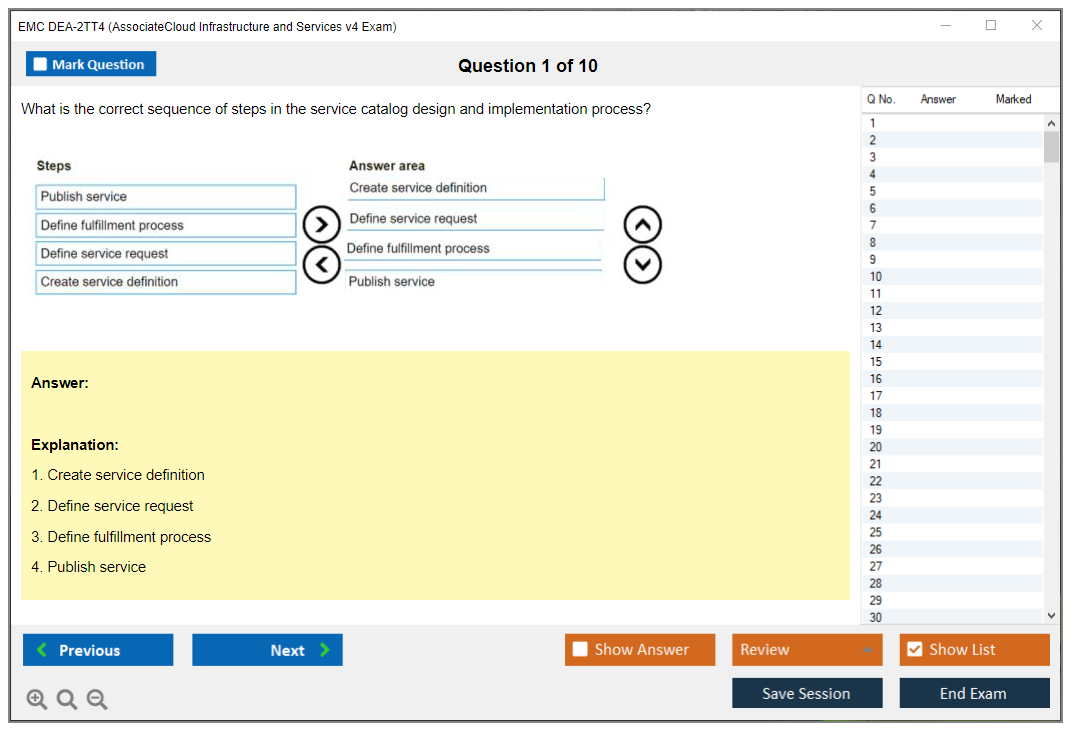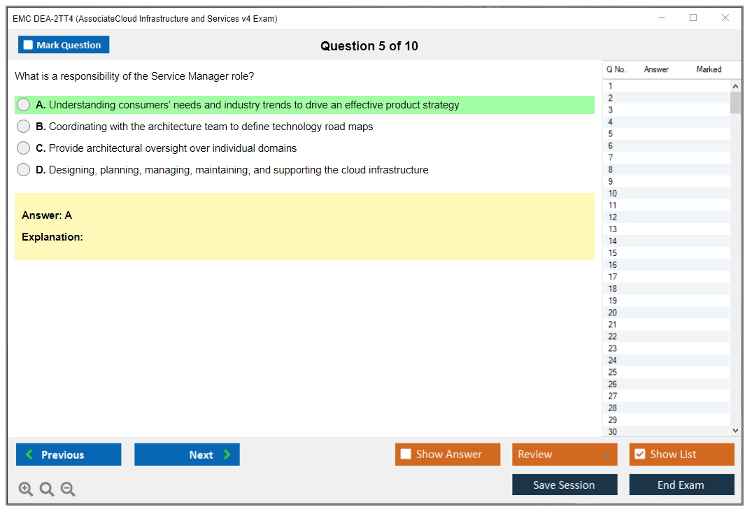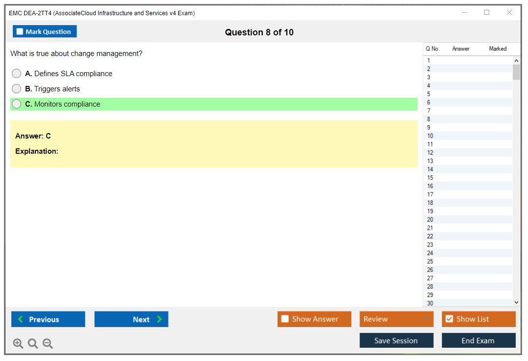 The EMC DEA-2TT4 (Associate - Cloud Infrastructure and Services v4 Exam) is designed to validate the knowledge and skills of individuals in cloud infrastructure and services. It covers a range of topics including cloud computing concepts, technologies, and best practices.