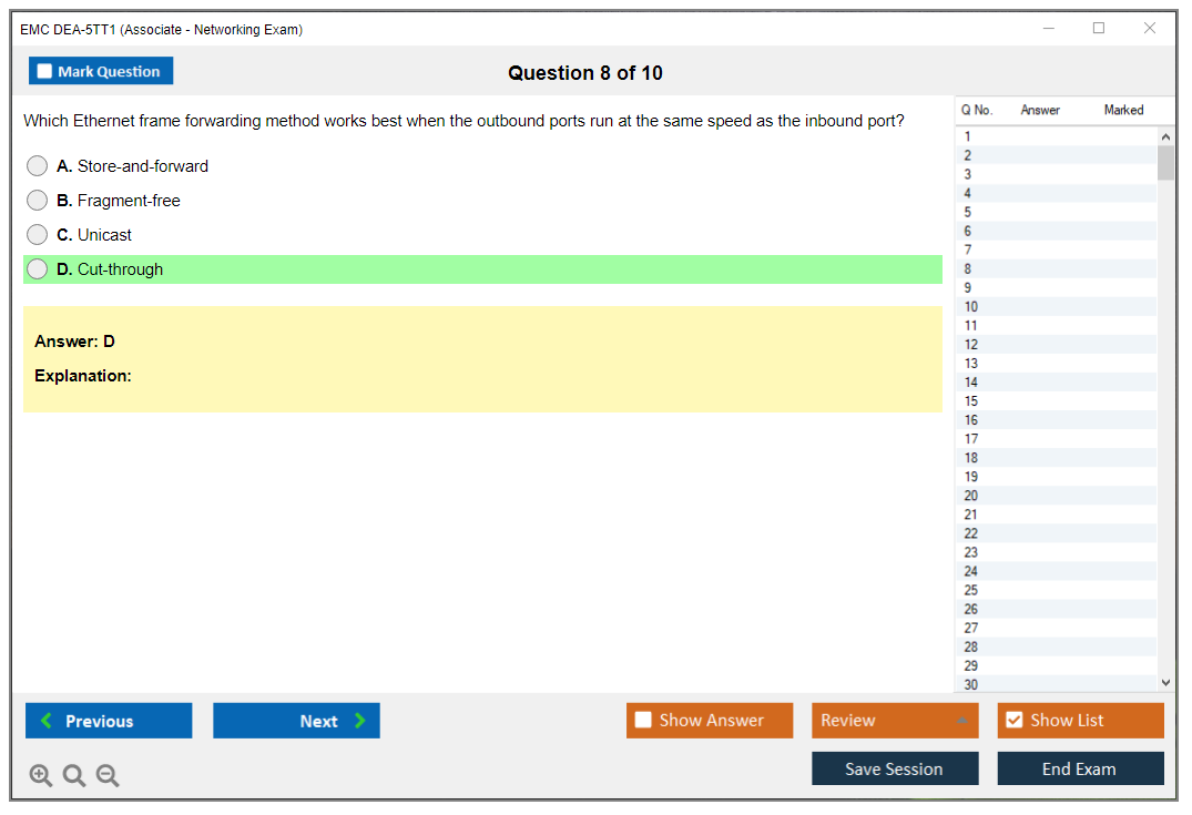 The EMC DEA-5TT1 (Associate - Networking Exam) is designed for individuals who are looking to validate their knowledge and skills in networking concepts and technologies. This certification is part of the Dell EMC Proven Professional certification framework.
