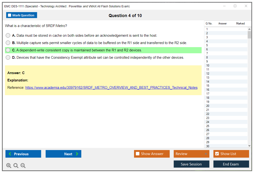 The EMC DES-1111 exam is a certification test offered by Dell Technologies for IT professionals specializing in PowerMax and VMAX All Flash storage solutions. The exam assesses the candidate's skills in designing, deploying, and managing these storage systems.