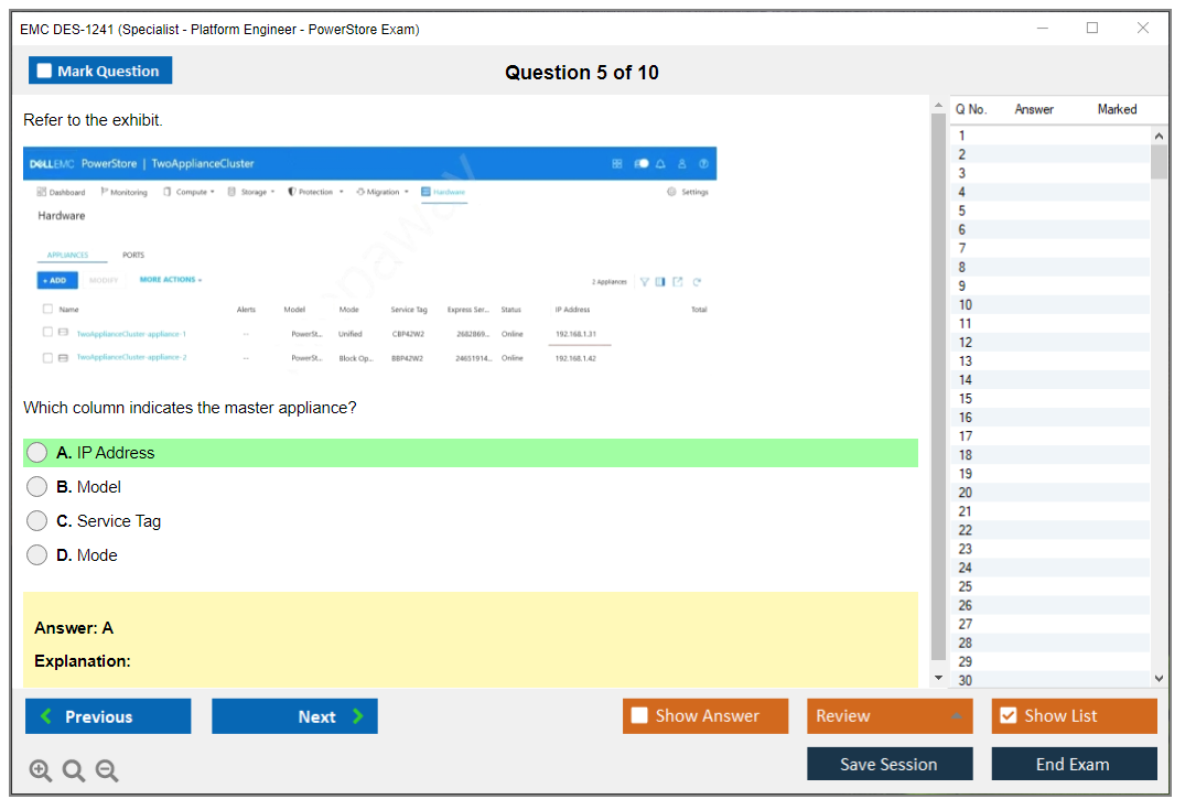 The EMC DES-1241 (Specialist - Platform Engineer PowerStore Exam) is designed to validate the knowledge and skills required to deploy, configure, manage, and troubleshoot Dell EMC PowerStore storage arrays.