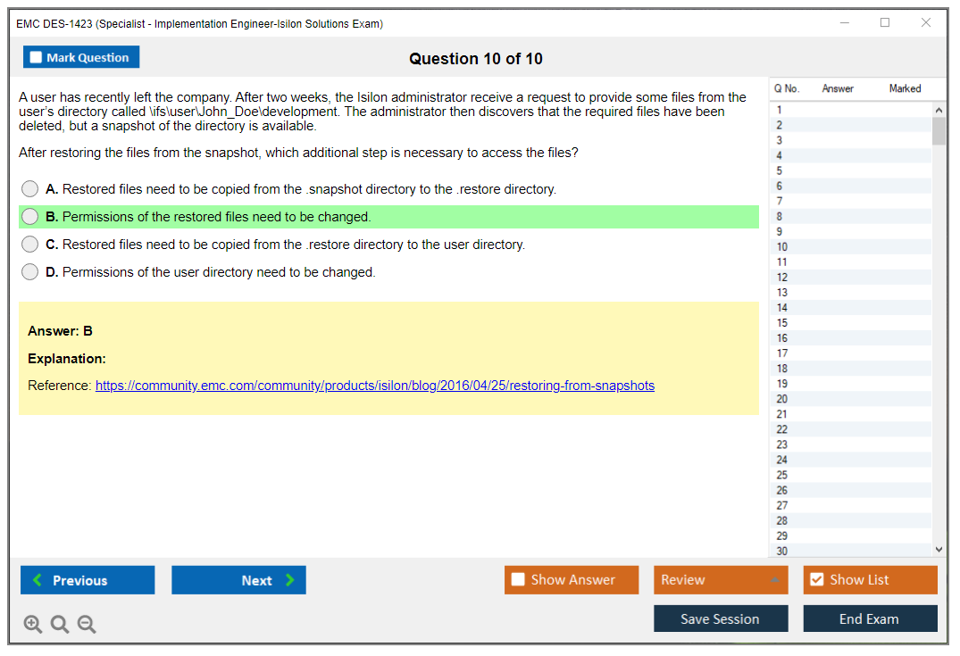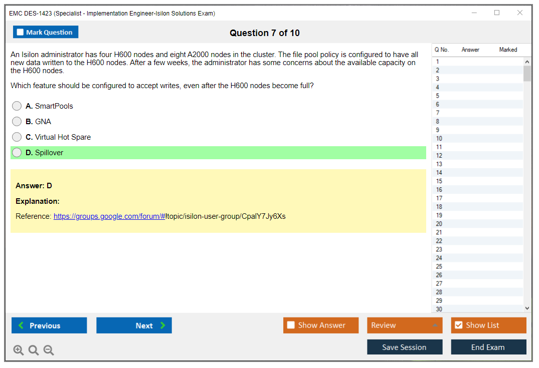 The EMC DES-1423 (Specialist - Implementation Engineer, Isilon Solutions Exam) is a certification exam designed to validate the skills and knowledge of professionals in implementing and managing Isilon storage solutions.