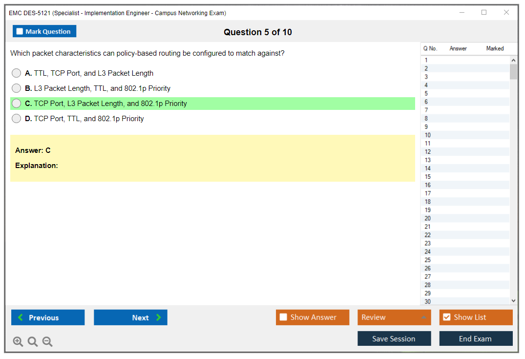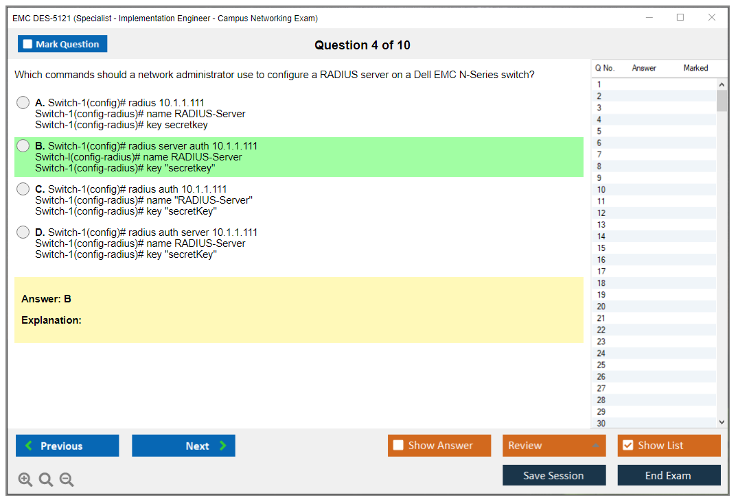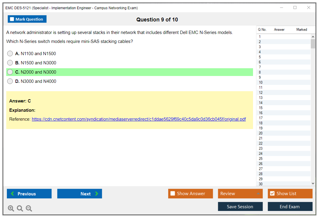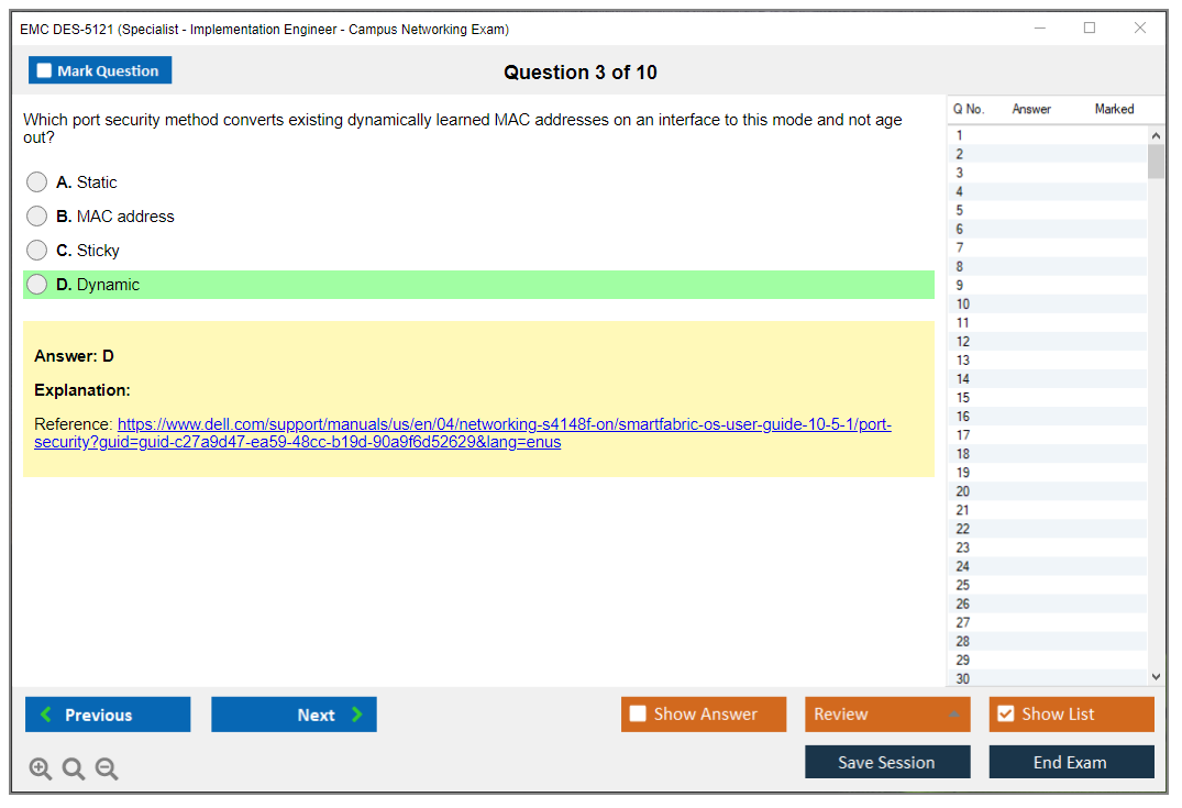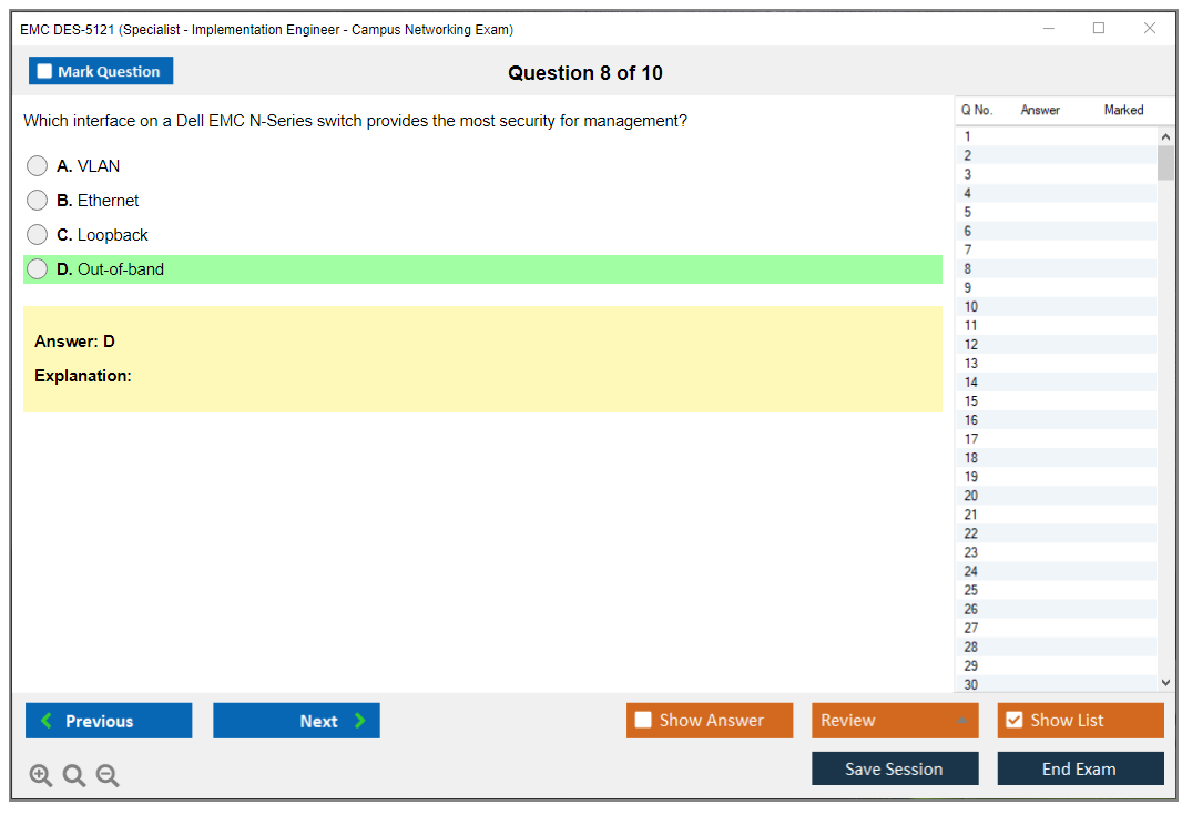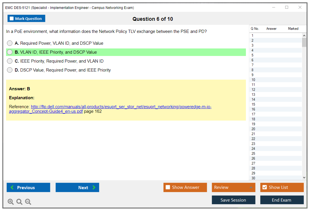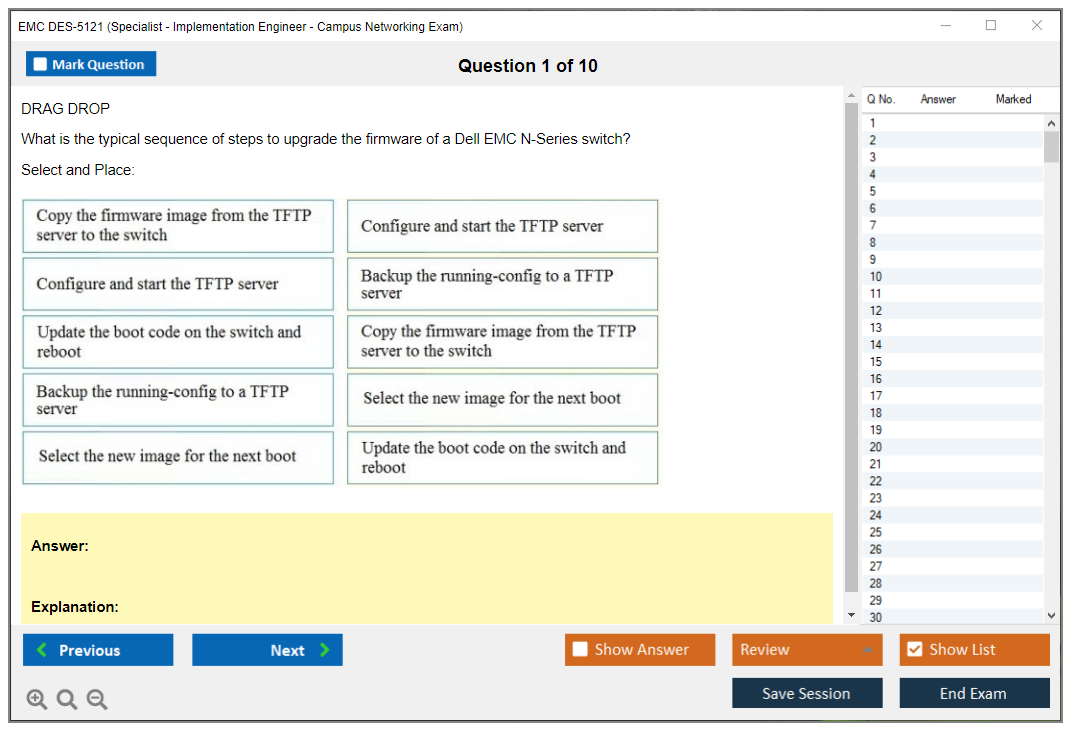The EMC DES-5121 (Specialist - Implementation Engineer - Campus Networking Exam) is designed to validate the knowledge and skills required to implement and manage campus networking solutions using Dell EMC products and technologies.