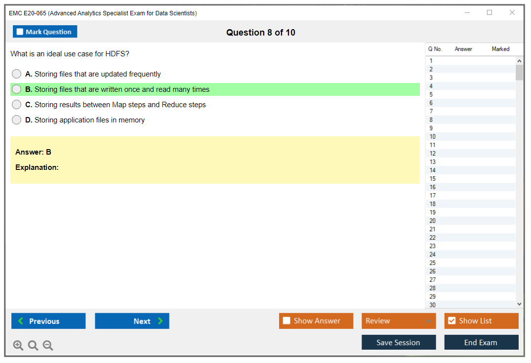 The EMC E20-065 Exam is a certification exam that tests the advanced analytics and data science skills of candidates, focusing on EMC technologies and solutions.