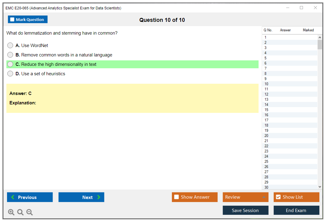 The EMC E20-065 (Advanced Analytics Specialist Exam for Data Scientists) is designed for data scientists and professionals seeking to validate their skills in advanced analytics and data science using EMC technologies.