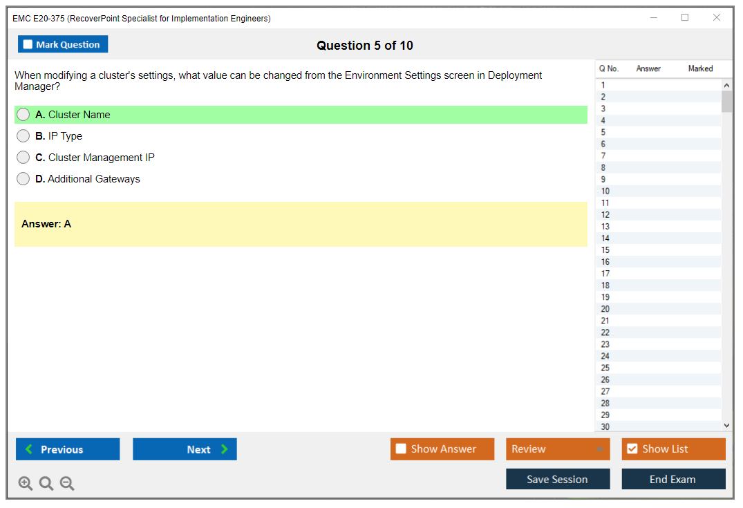 The EMC E20-375 (RecoverPoint Specialist Exam for Implementation Engineers) is designed to validate the knowledge and skills necessary to implement and manage EMC RecoverPoint solutions.