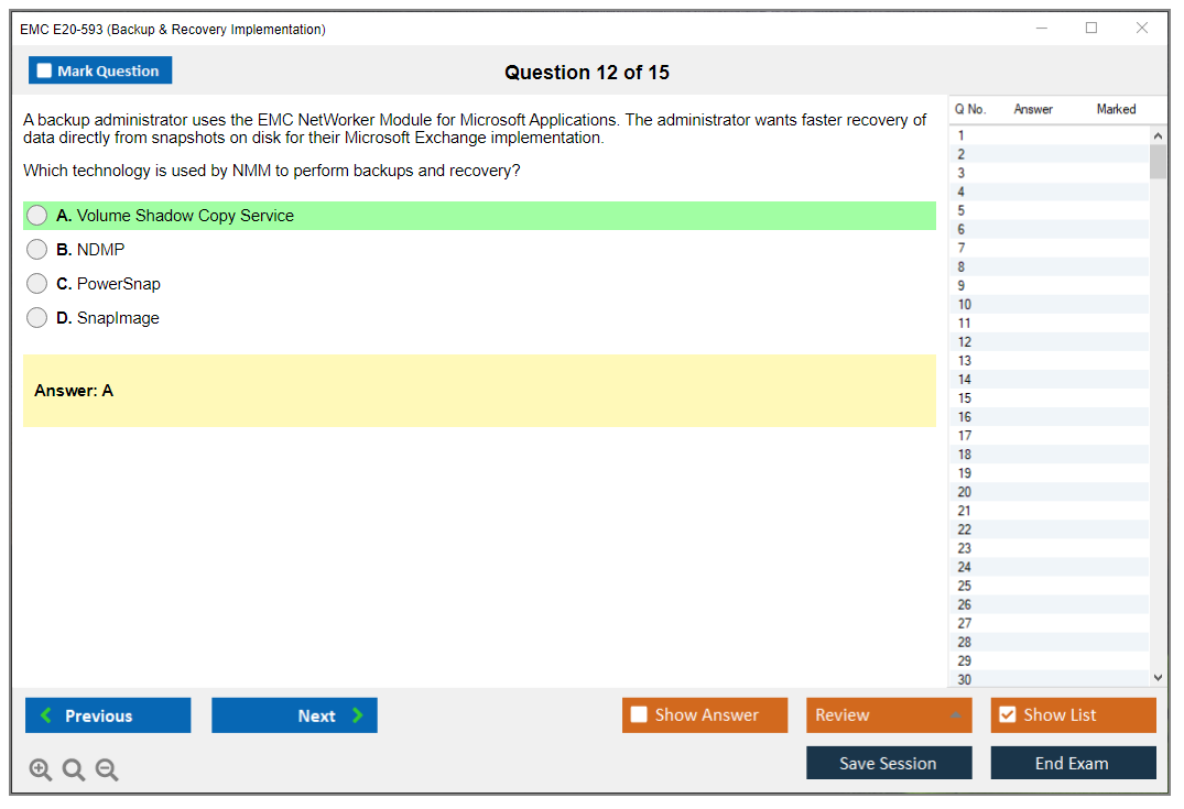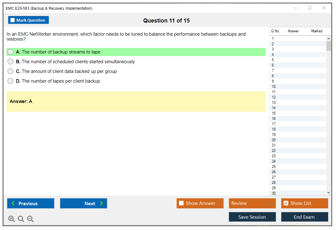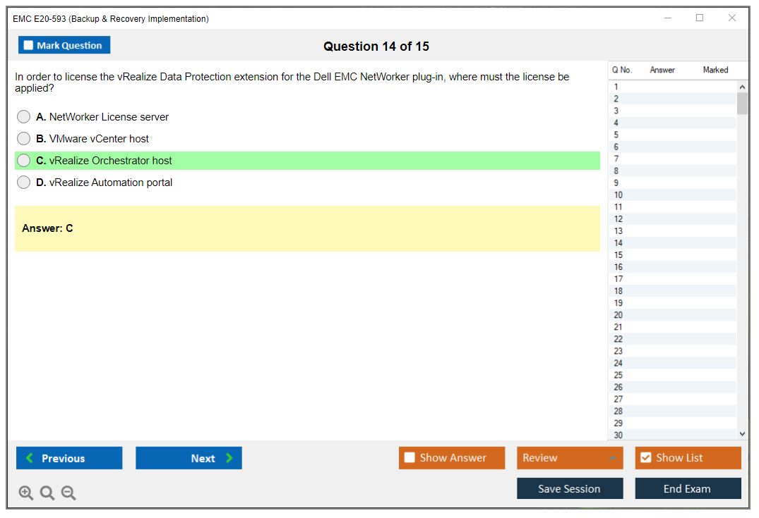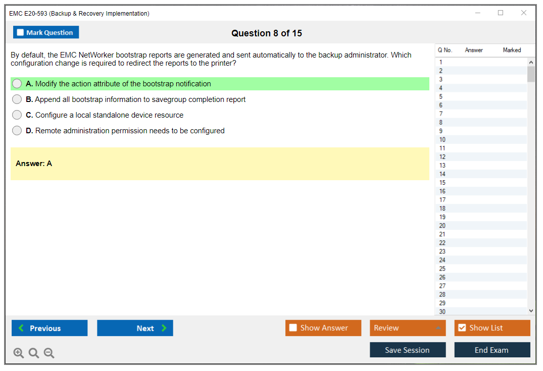 The EMC E20-593 (Backup & Recovery Implementation) Exam is designed to validate the knowledge and skills necessary to implement, configure, and manage EMC backup and recovery solutions.