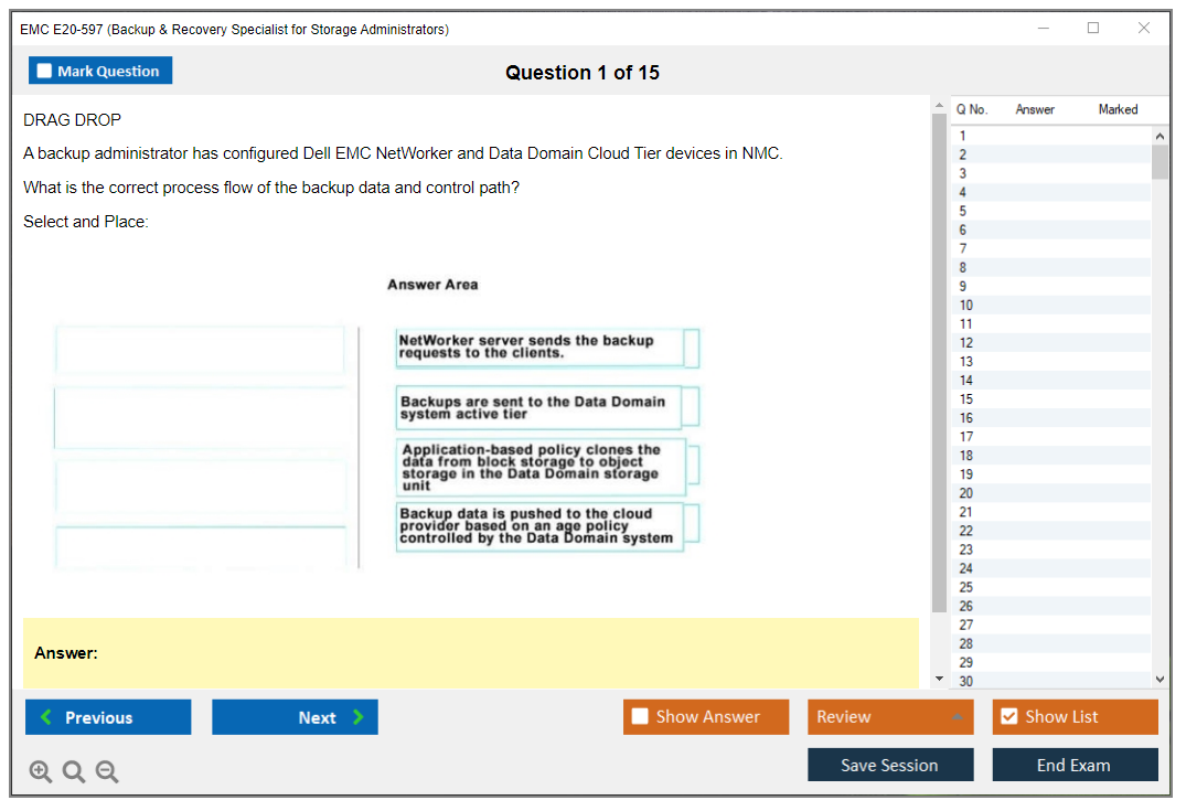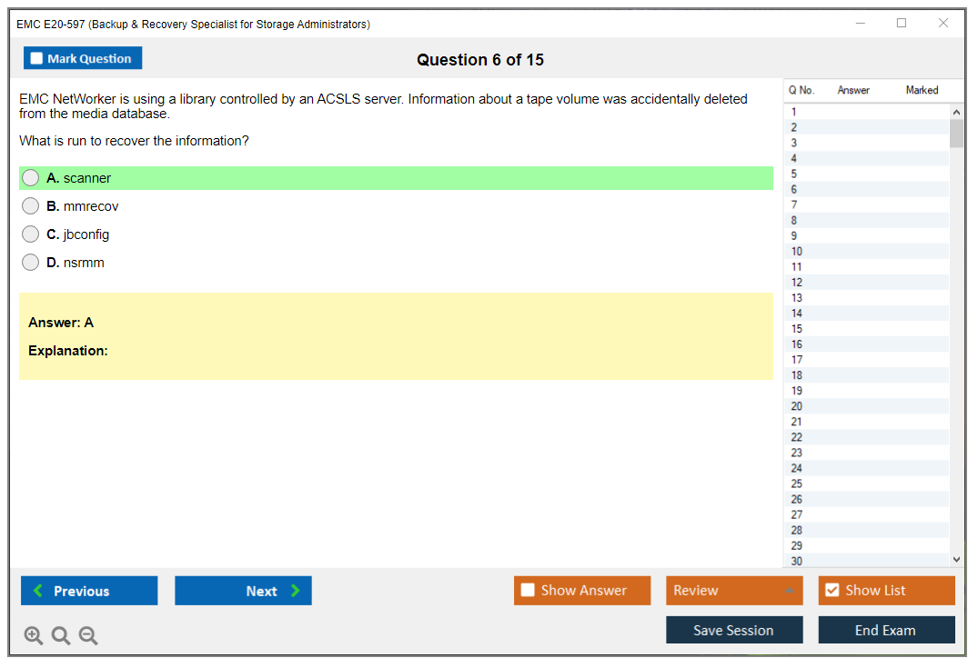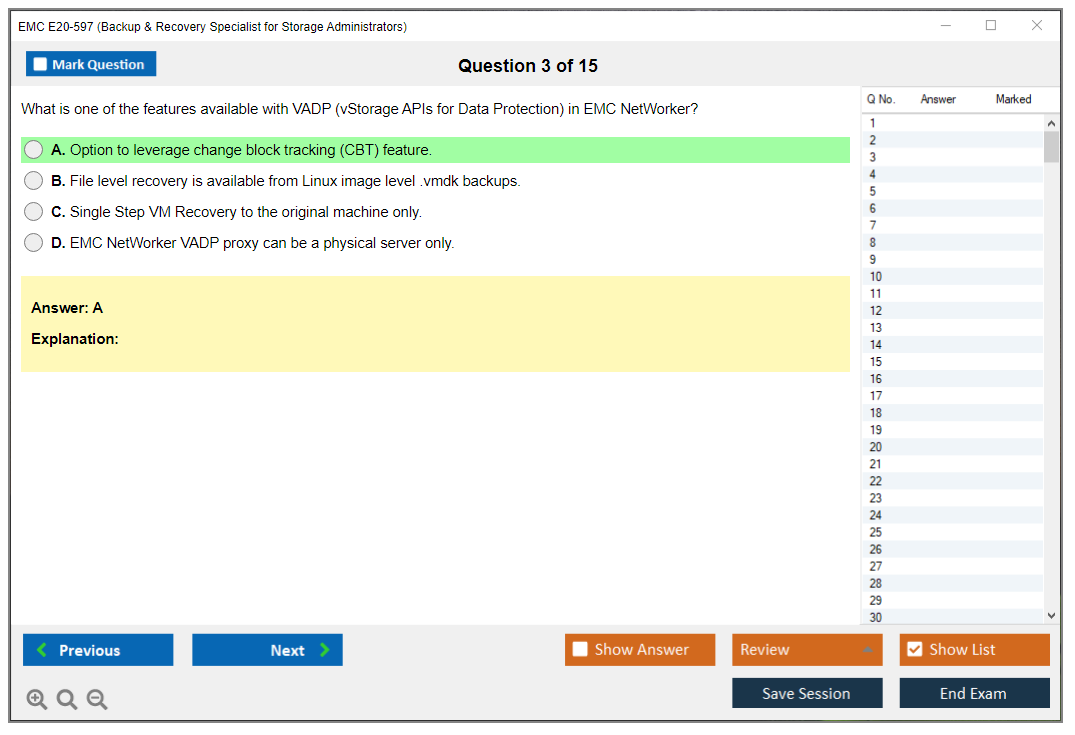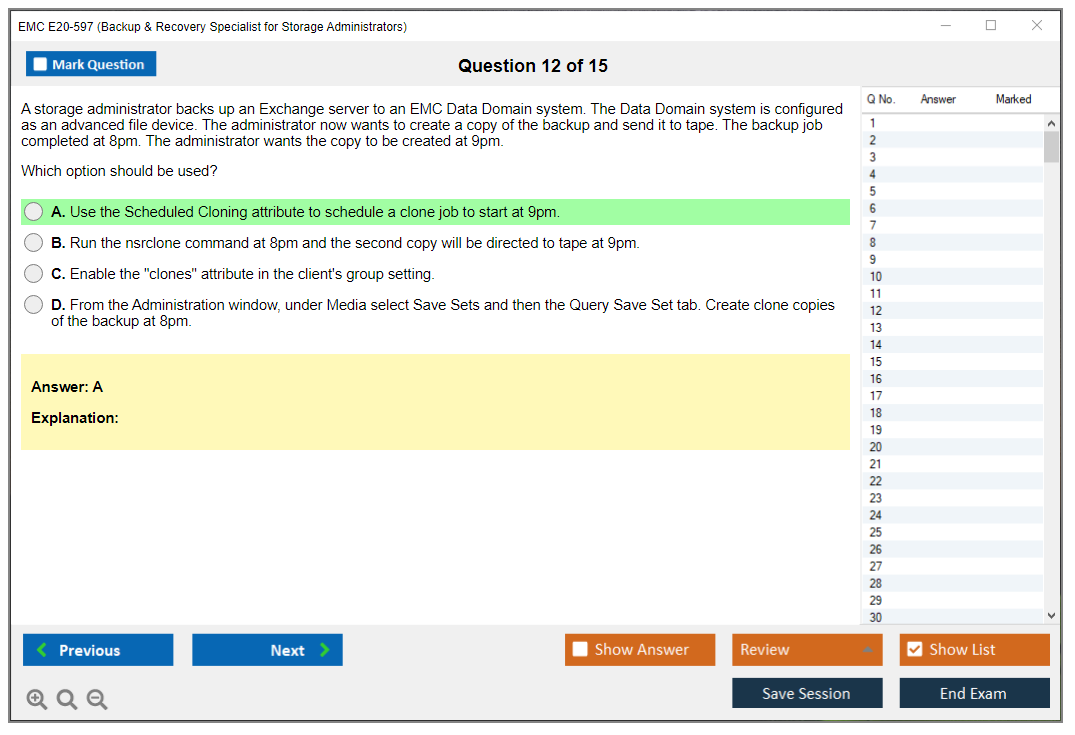 The EMC E20-597 (Backup & Recovery Specialist for Storage Administrators) Exam is designed to validate the knowledge and skills required to deploy, configure, and manage EMC backup and recovery solutions. This certification focuses on various EMC technologies and products, ensuring that professionals can effectively handle backup and recovery tasks in enterprise environments.