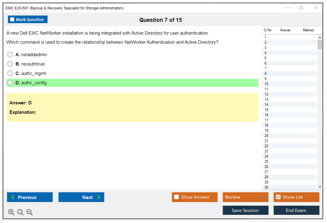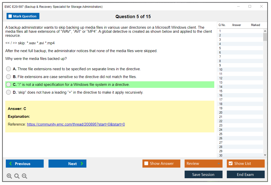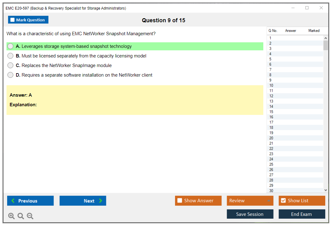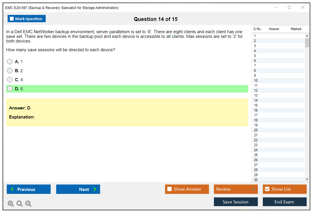 The EMC E20-597 (Backup & Recovery Specialist for Storage Administrators) Exam is designed to validate the knowledge and skills required to deploy, configure, and manage EMC backup and recovery solutions. This certification focuses on various EMC technologies and products, ensuring that professionals can effectively handle backup and recovery tasks in enterprise environments.