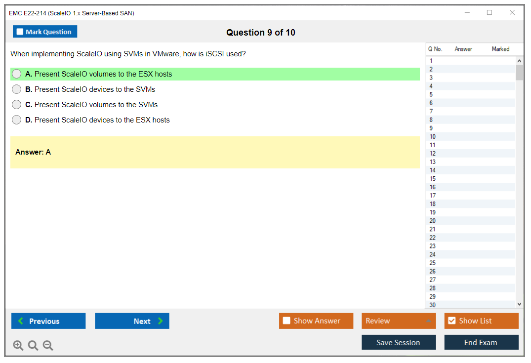 The EMC E22-214 (ScaleIO 1.x Server-Based SAN) Exam is designed to test the knowledge and skills necessary to install, configure, and manage EMC ScaleIO solutions. It covers various aspects of server-based SAN technologies and the specific functionalities of EMC ScaleIO.