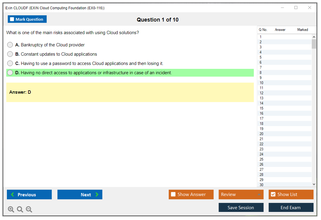 The EXIN CLOUDF exam is part of the broader EXIN cloud computing certification track, which includes advanced levels such as EXIN Cloud Technologies Advanced and EXIN Cloud Computing Professional.