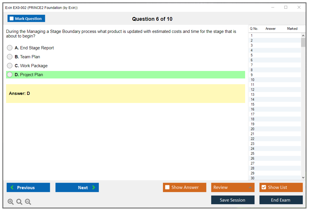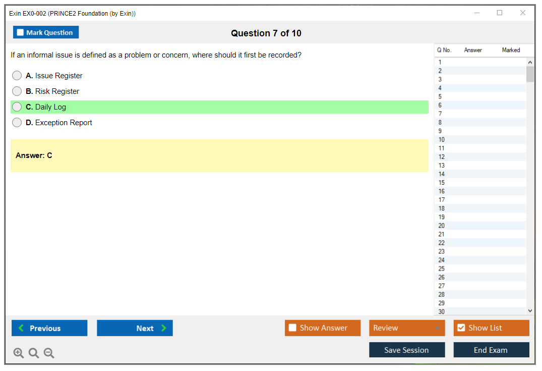 The Exin EX0-002 (PRINCE2 Foundation) exam is designed to test the candidate's knowledge of the PRINCE2 methodology, a structured project management method. It covers the principles, themes, and processes of PRINCE2 and aims to ensure that candidates understand how to apply them in a project environment.