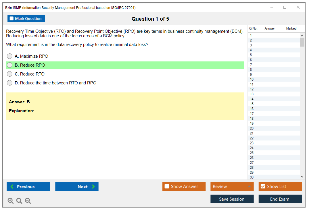 What are the Sample Questions of Exin ISMP Exam?