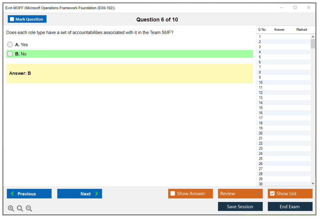 The Exin MOFF (Microsoft Operations Framework Foundation, EX0-102) exam is designed to validate an individual's understanding of the essential concepts of the Microsoft Operations Framework (MOF), which provides guidelines for IT service management.