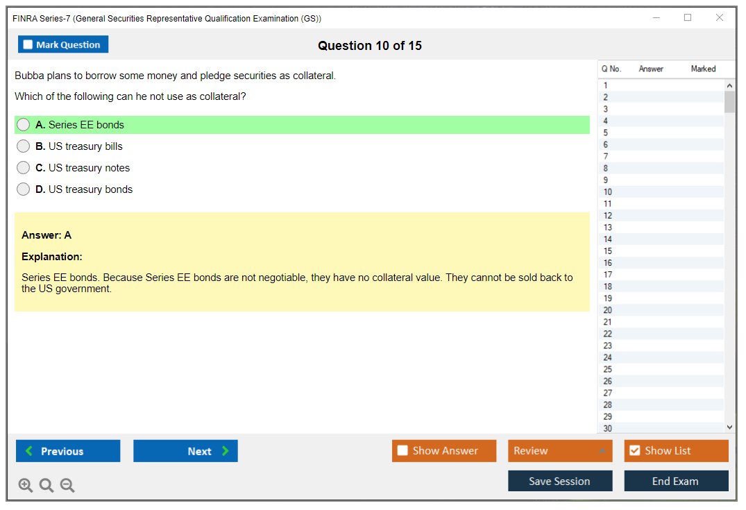 The FINRA Series-7 Exam, also known as the General Securities Representative Qualification Examination (GS), is designed to test the knowledge and skills of individuals seeking to become registered representatives in the securities industry. It covers a broad range of topics related to the sale of securities.