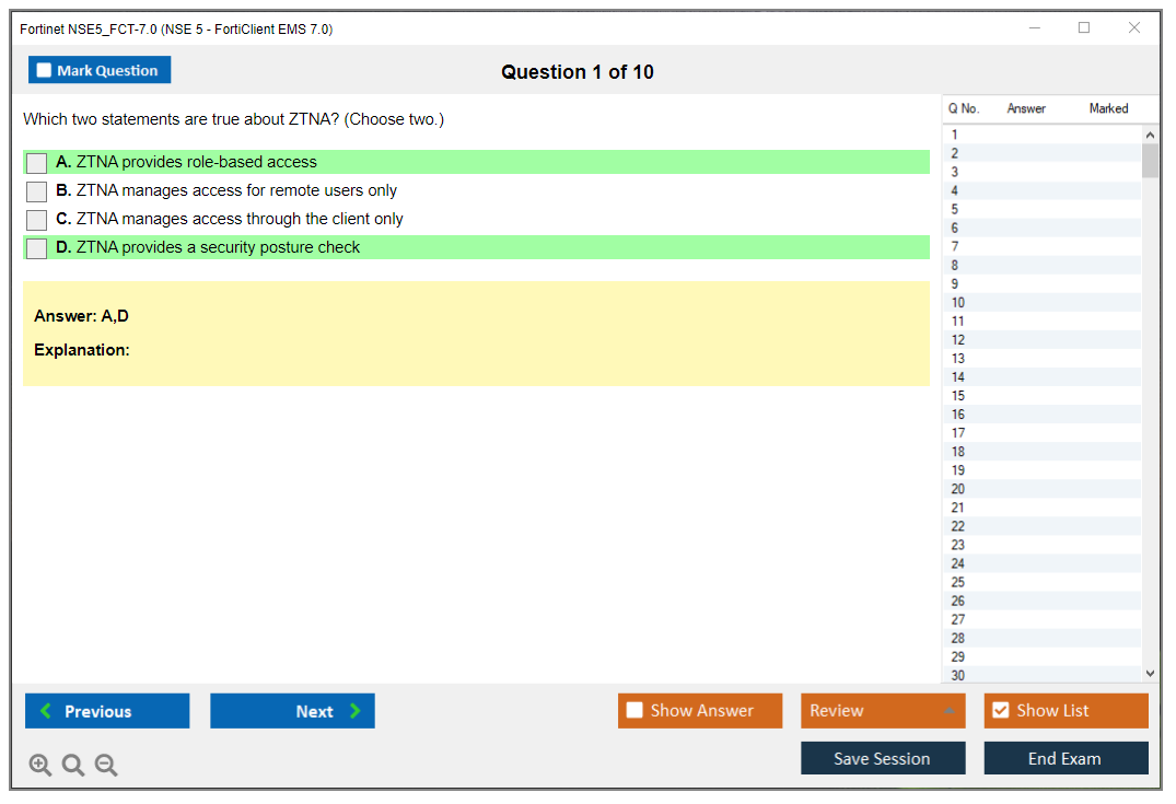 The Fortinet NSE5_FCT-7.0 (NSE5_FCT-7.0 NSE 5 - FortiClient EMS 7.0) exam is part of the NSE 5 certification program, which validates the candidate's ability to deploy, manage, and troubleshoot FortiClient EMS solutions. The exam focuses on skills and knowledge related to FortiClient EMS 7.0.