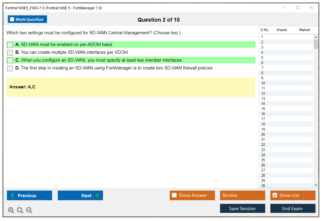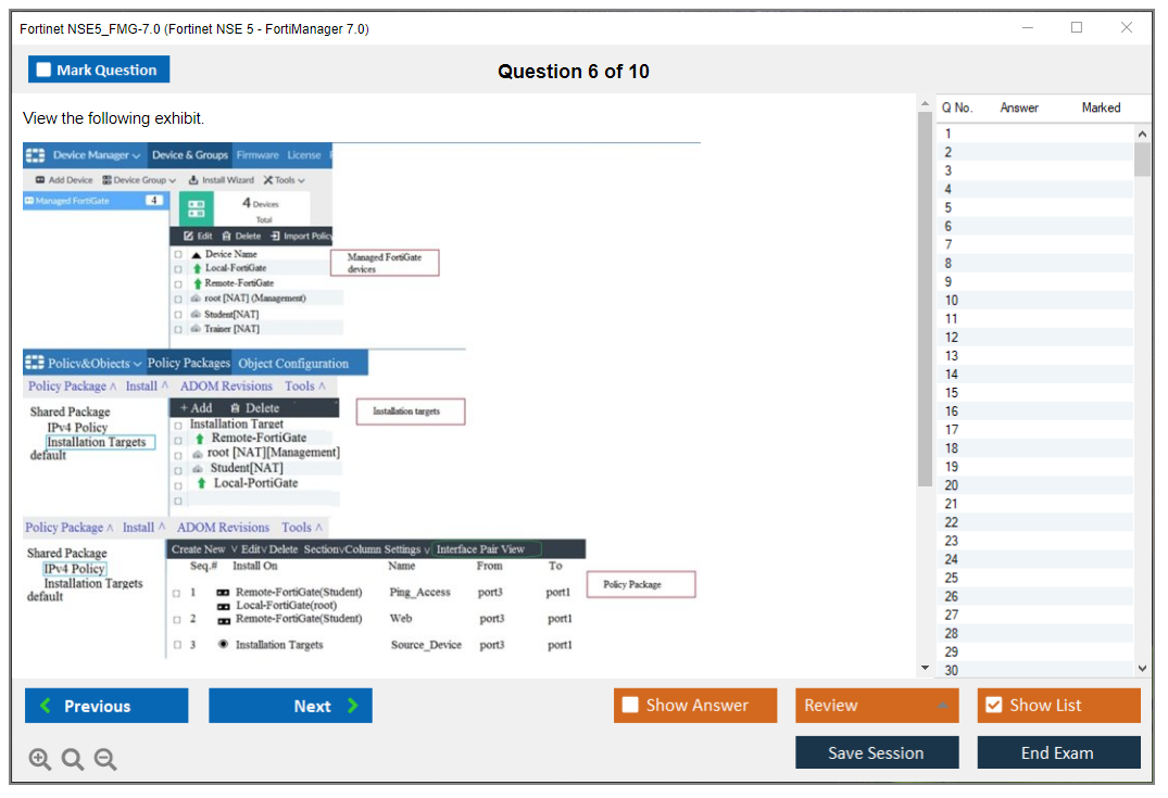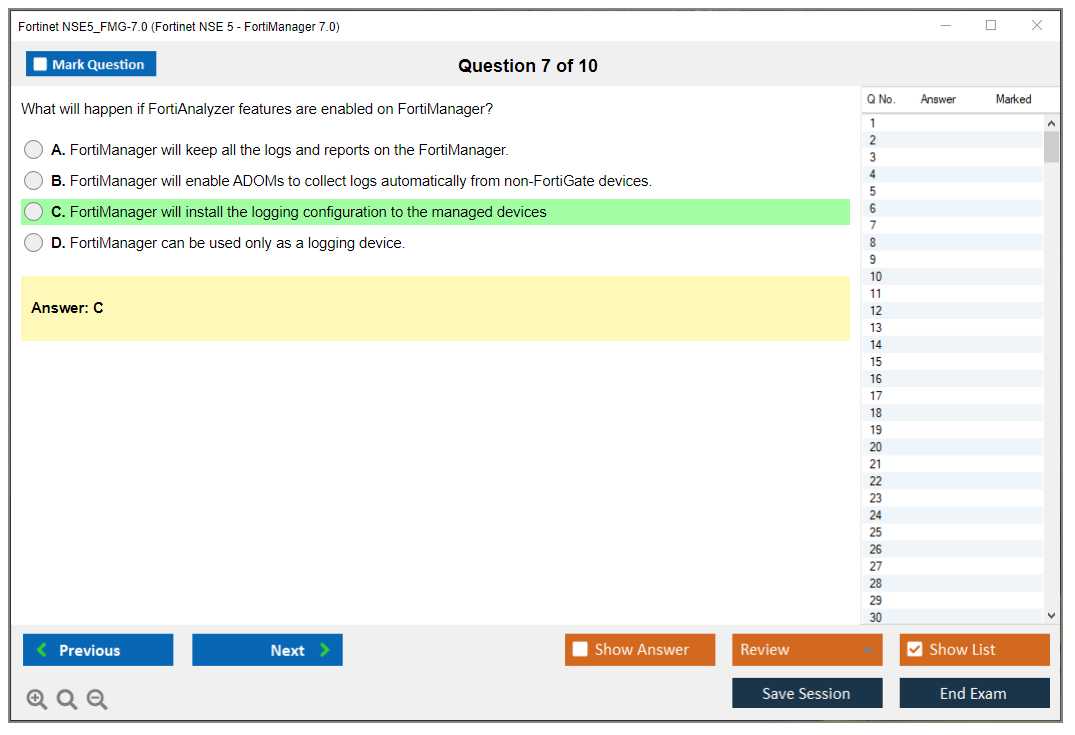 The Fortinet NSE5_FMG-7.0 (Fortinet NSE 5 - FortiManager 7.0) exam is designed to test the knowledge and skills required to configure, manage, and troubleshoot FortiManager solutions.
