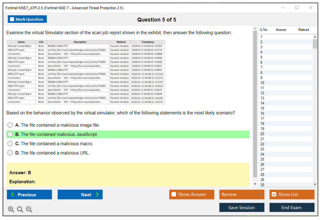 What are the Sample Questions of Fortinet NSE7_ATP-2.5 Exam?