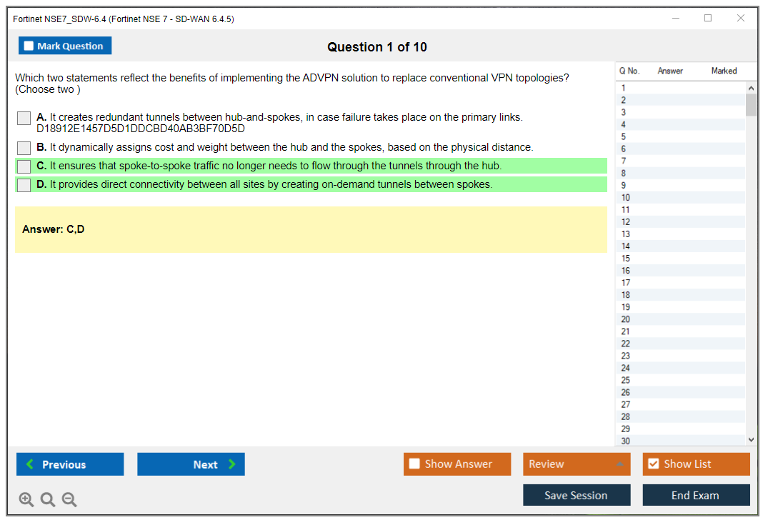 The Fortinet NSE7_SDW-6.4 (Fortinet NSE 7 - SD-WAN 6.4.5) exam is designed to test advanced knowledge and skills in deploying, managing, and troubleshooting Fortinet's SD-WAN solutions.