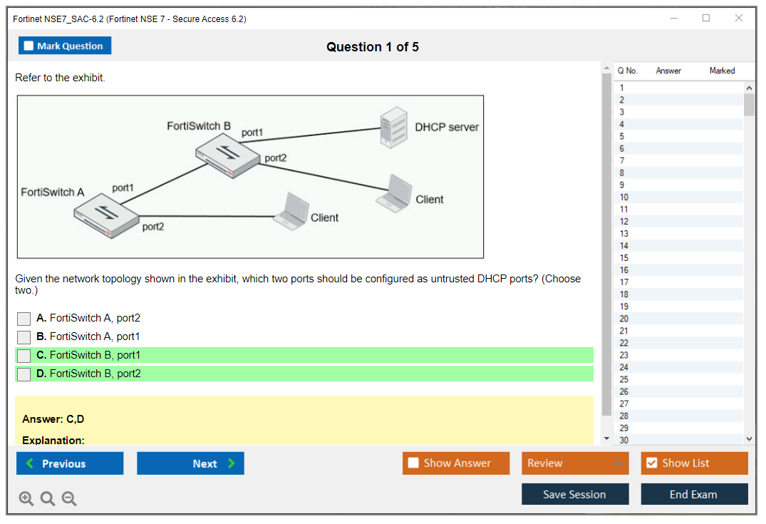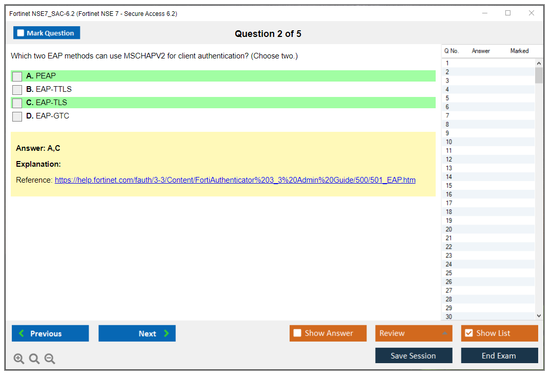 The Fortinet NSE7_SAC-6.2 (Fortinet NSE 7 - Secure Access 6.2) exam is a certification exam designed to validate the skills and knowledge of IT professionals in managing and implementing secure access solutions using Fortinet products.