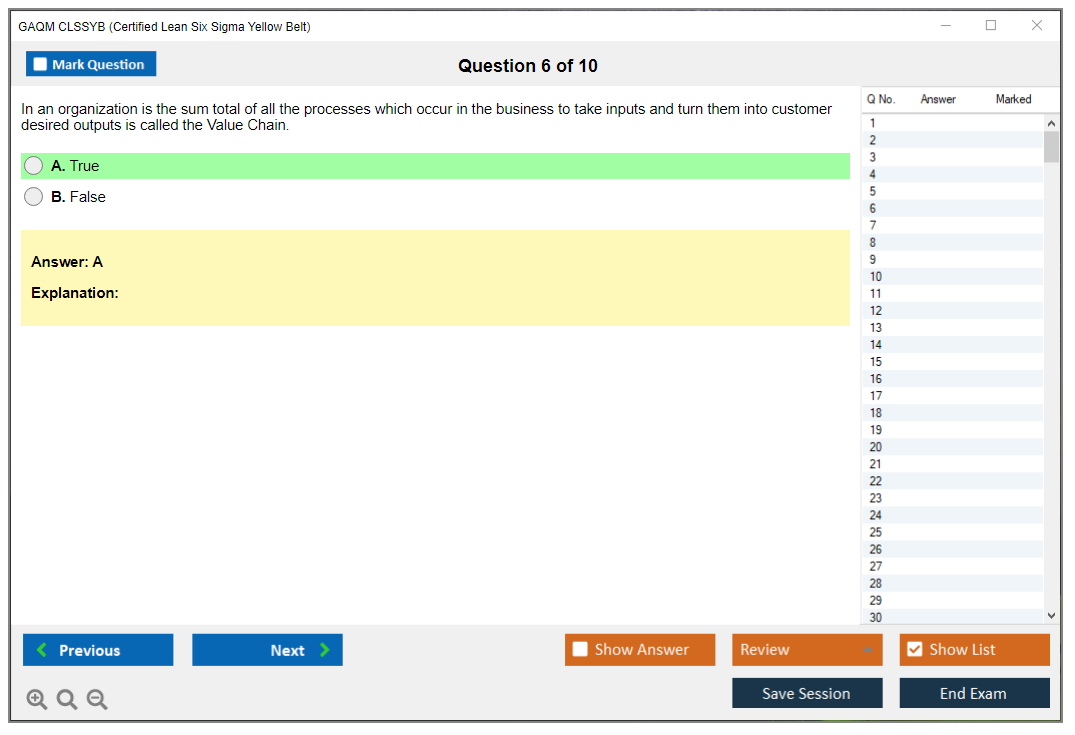 The GAQM Certified Lean Six Sigma Yellow Belt (CLSSYB) exam is designed for individuals who are new to the world of Six Sigma and have a small role, interest, or need to develop foundational knowledge. It focuses on the basic concepts of Lean and Six Sigma methodologies.