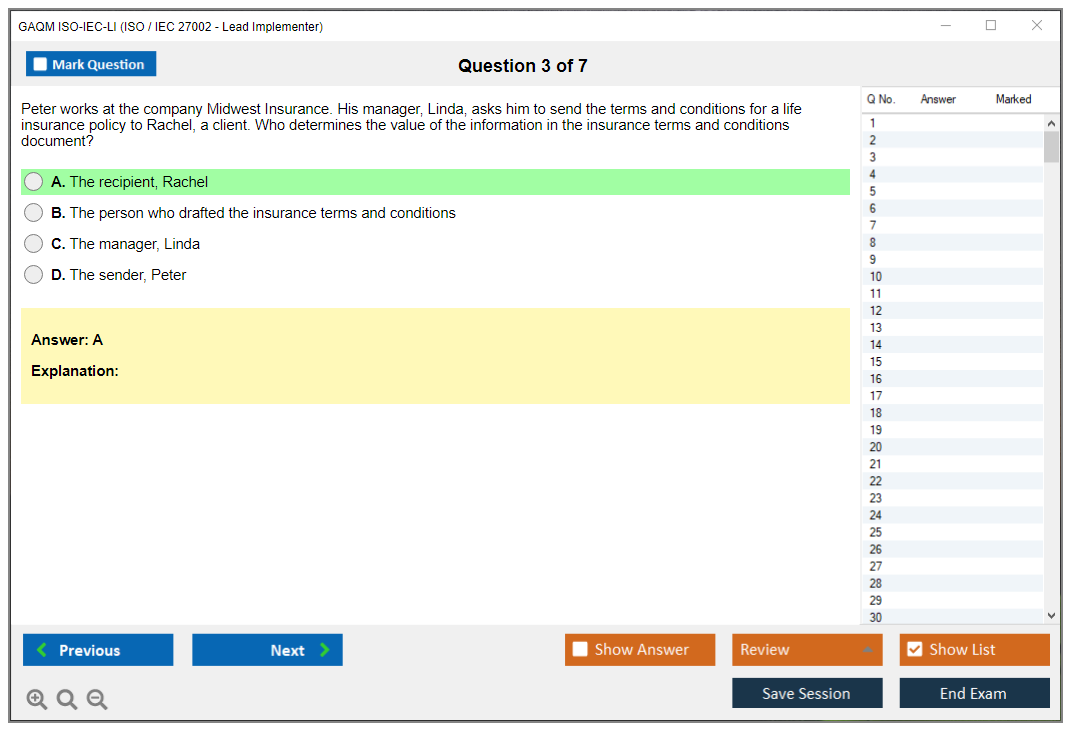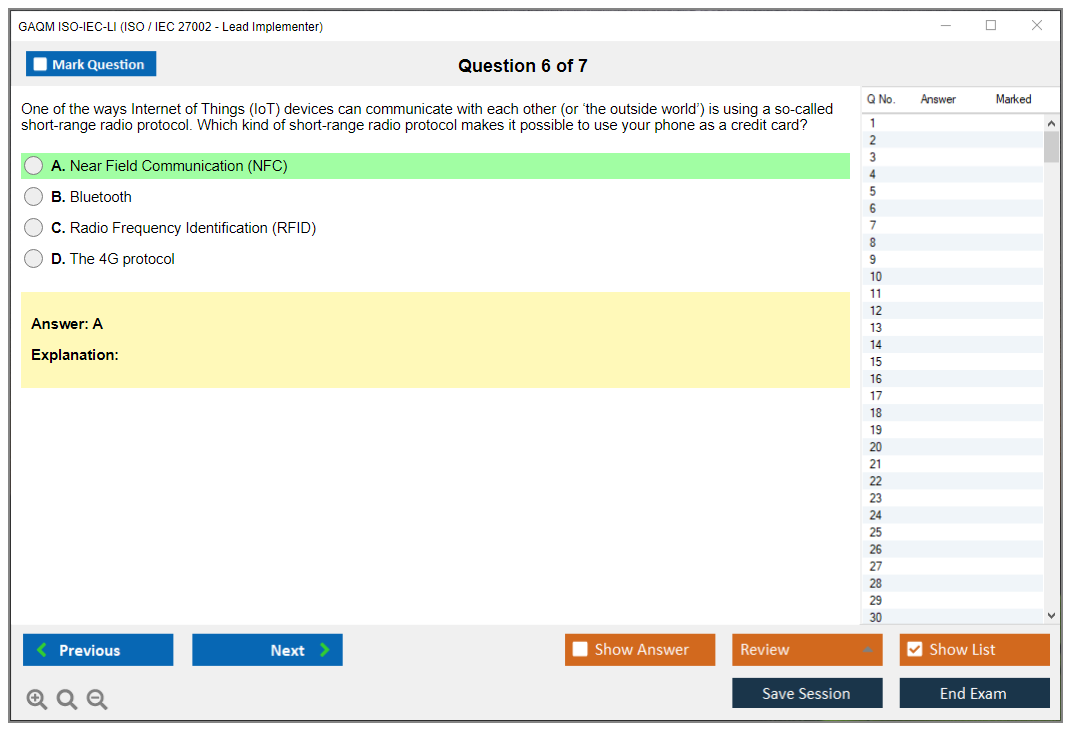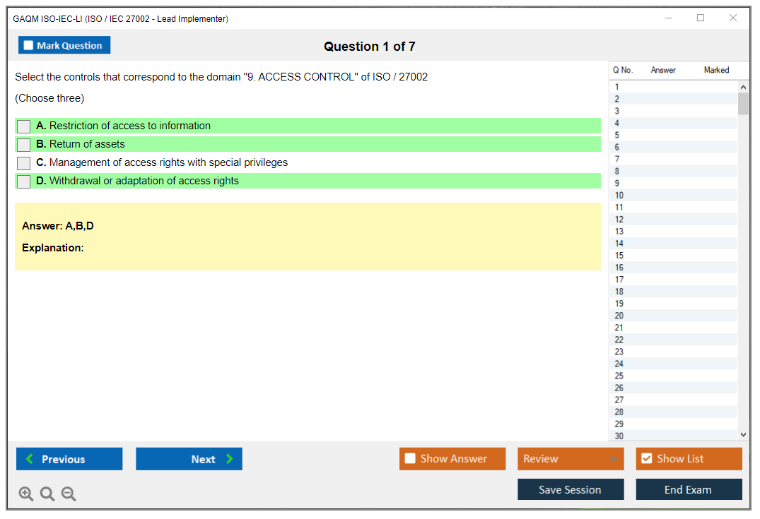 The GAQM ISO-IEC-LI (ISO / IEC 27002 - Lead Implementer) Exam is designed to validate the knowledge and skills required to implement an Information Security Management System (ISMS) based on ISO/IEC 27002. It is aimed at professionals who are responsible for the implementation and management of information security controls.
