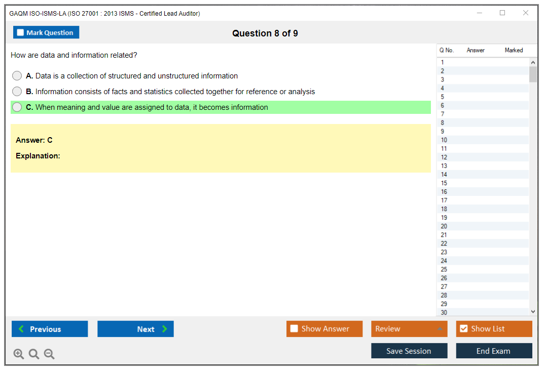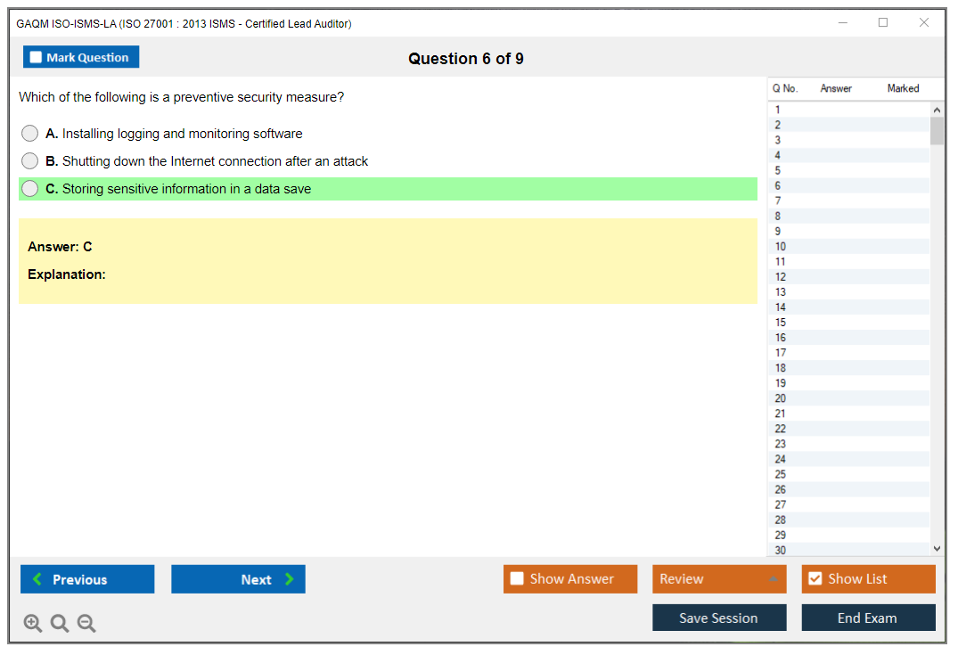Sample questions for the GAQM ISO-ISMS-LA Exam can be found on the GAQM's official website or through various online certification preparation resources.