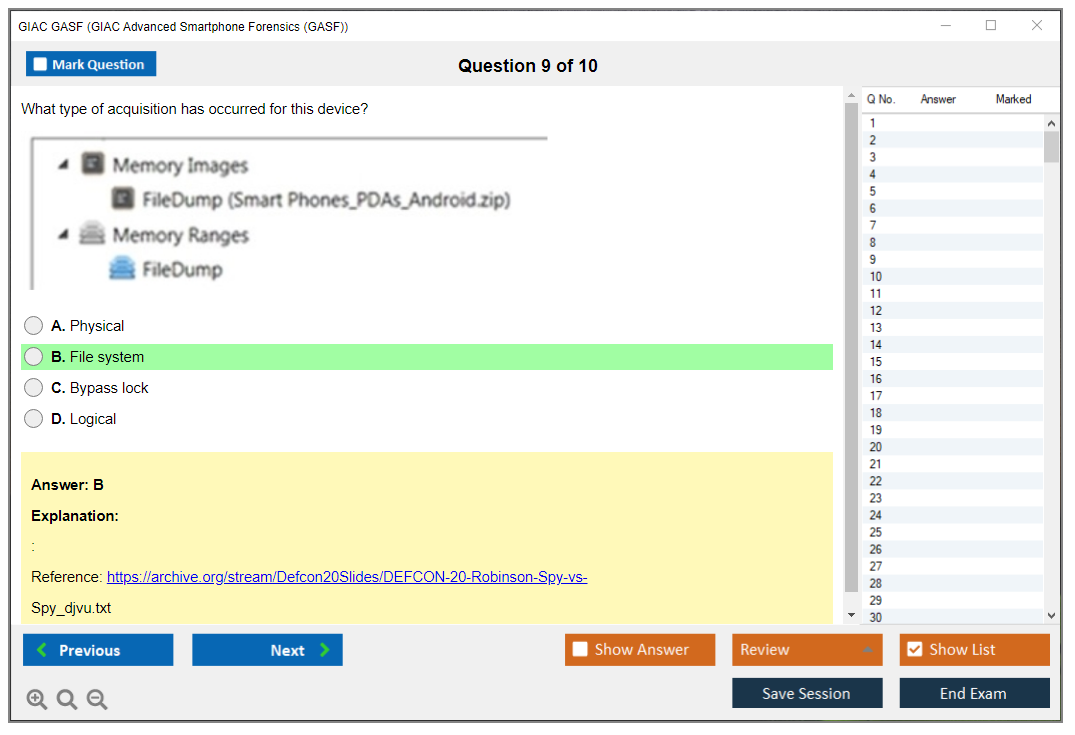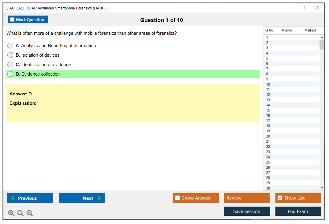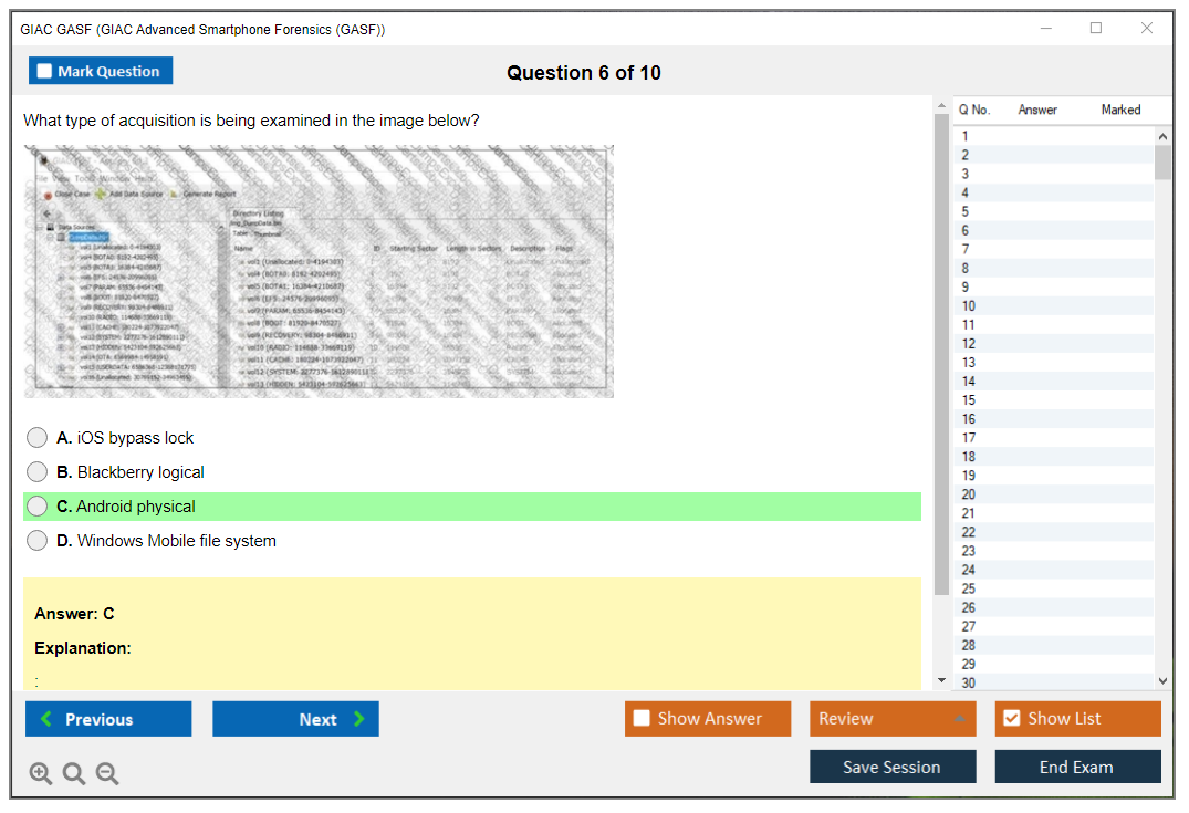 The GIAC Advanced Smartphone Forensics (GASF) certification is designed for professionals who want to demonstrate their ability to perform forensic examinations on mobile devices, including smartphones and tablets. The exam covers various aspects of mobile forensics, including the extraction and analysis of data from different mobile operating systems.