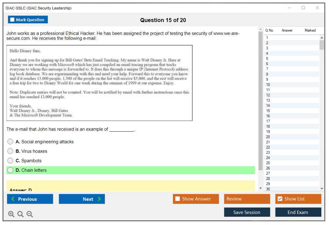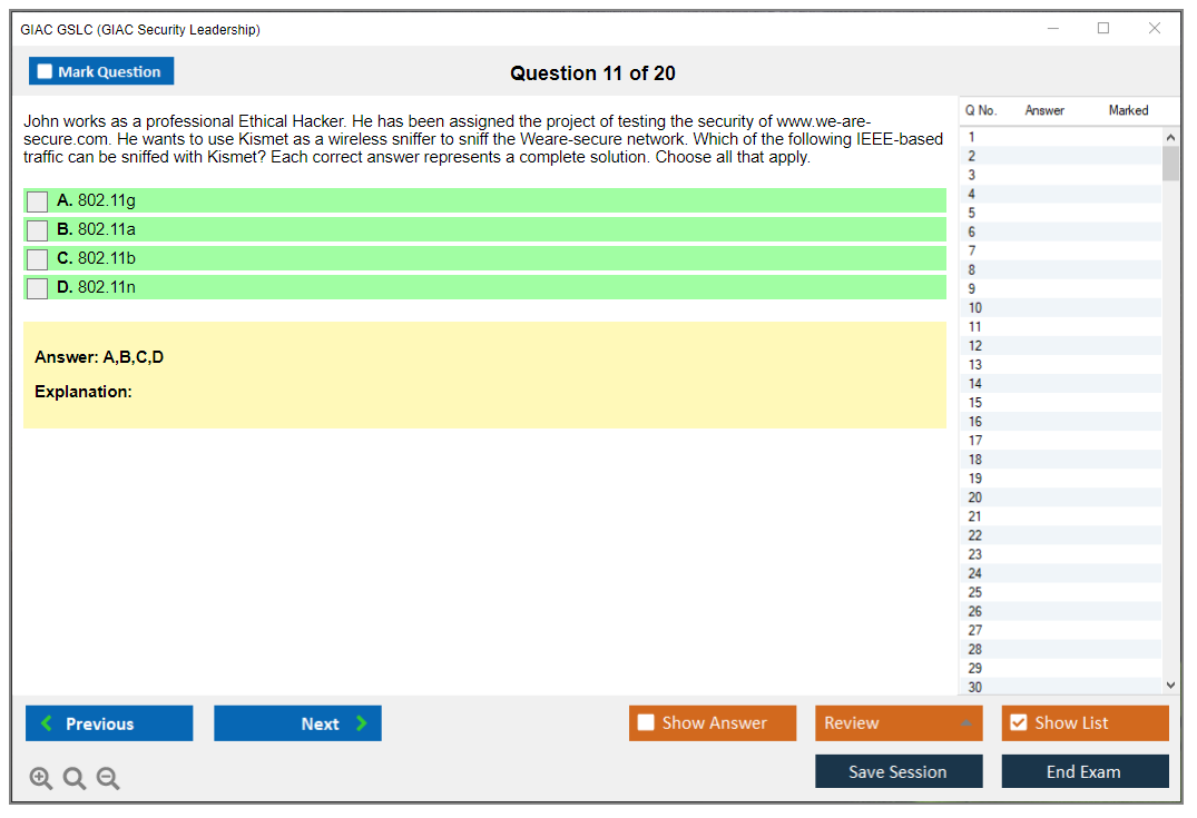 The GIAC GSLC Exam is a certification assessment that evaluates an individual's knowledge and skills in security management, risk management, incident handling, and other essential security leadership areas.